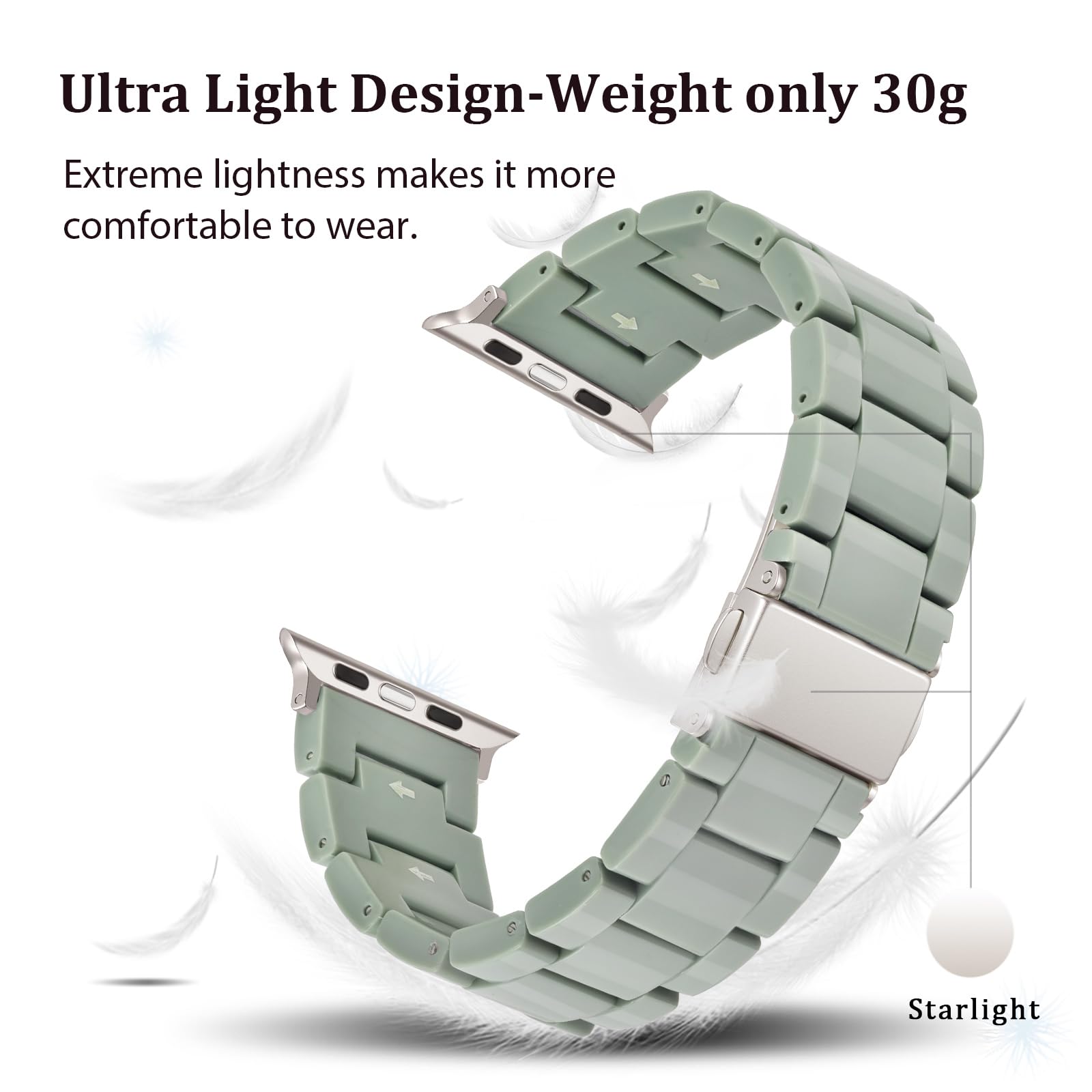 Premium Materials-Expertly hand-polished resin delivers lightweight comfort similar to plastic but with greater durability. At only 1.06oz (29.2g), it’s far lighter than stainless steel for all‑day flexibility. Daily water resistant, it stands up to handwashing, rain, and swimming—wear it nonstop through every moment of life.