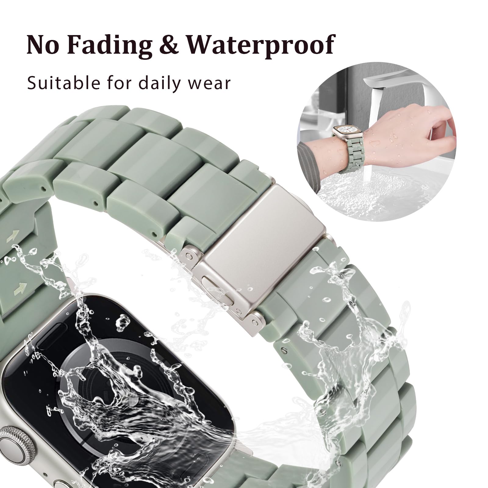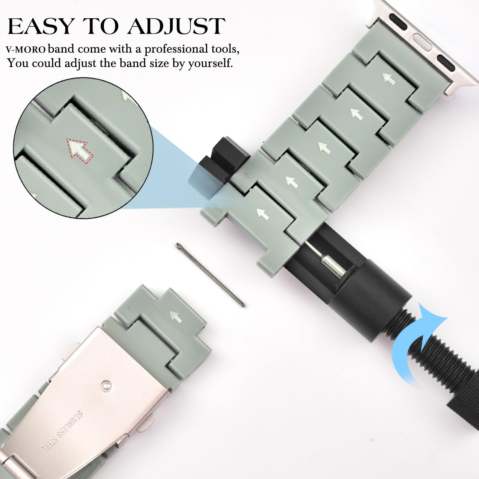 Easy to Use & Ultra Durable-Featuring an ultra-durable premium stainless steel buckle, this band opens and locks smoothly with just one press. The included resizing tool and easy-to-follow instructions let you get a perfect, secure, long-lasting fit in minutes.
