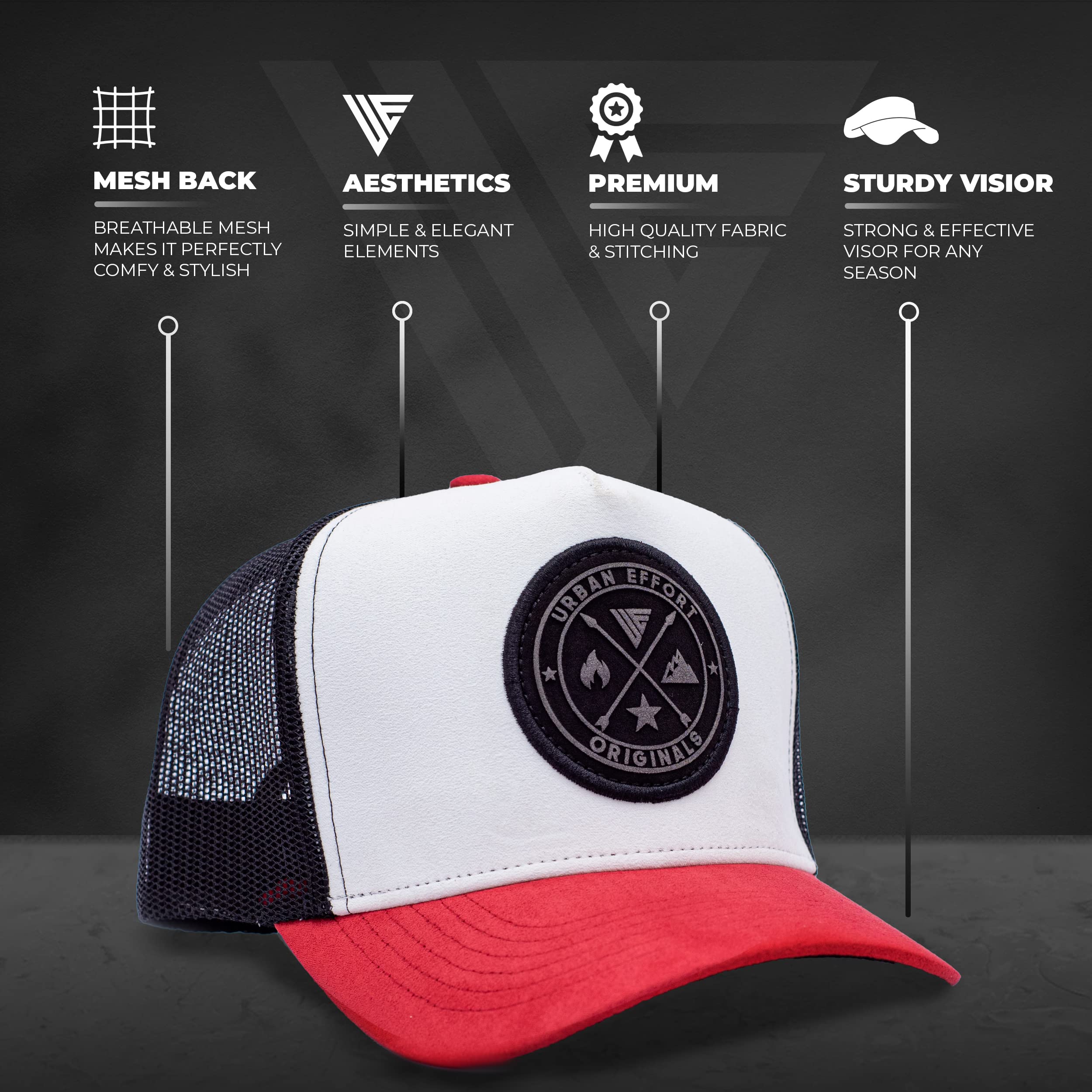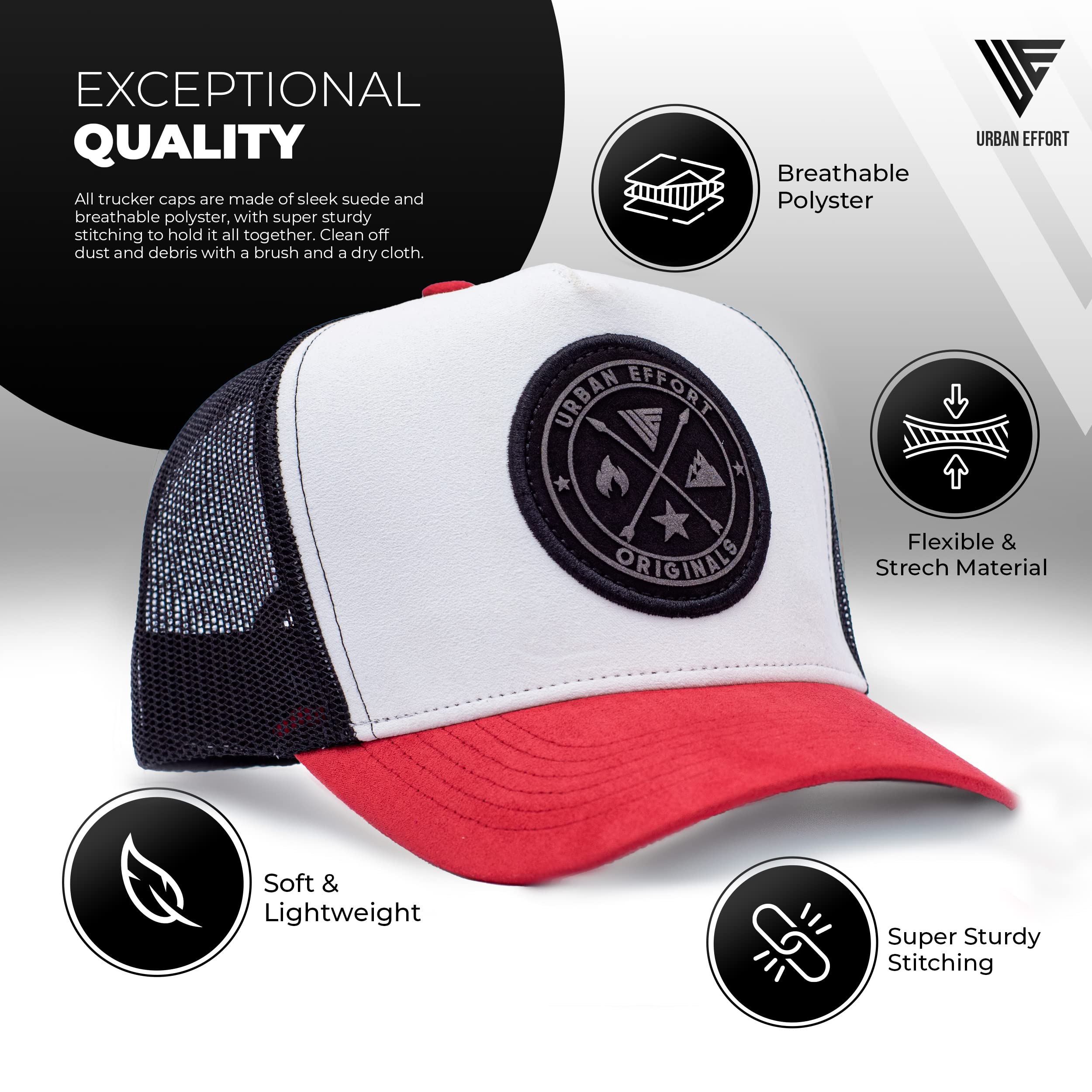 Premium Quality: The Urban Effort women and man's cap is a true standout. It combines a premium combination of polyester mesh and suede fabric for comfort, along with intricate details that make it truly unique. With its exquisite craftsmanship, this cap is made to last. It's made of 100 percent polyester for durability and is a super comfortable, adjustable hat with a snapback.