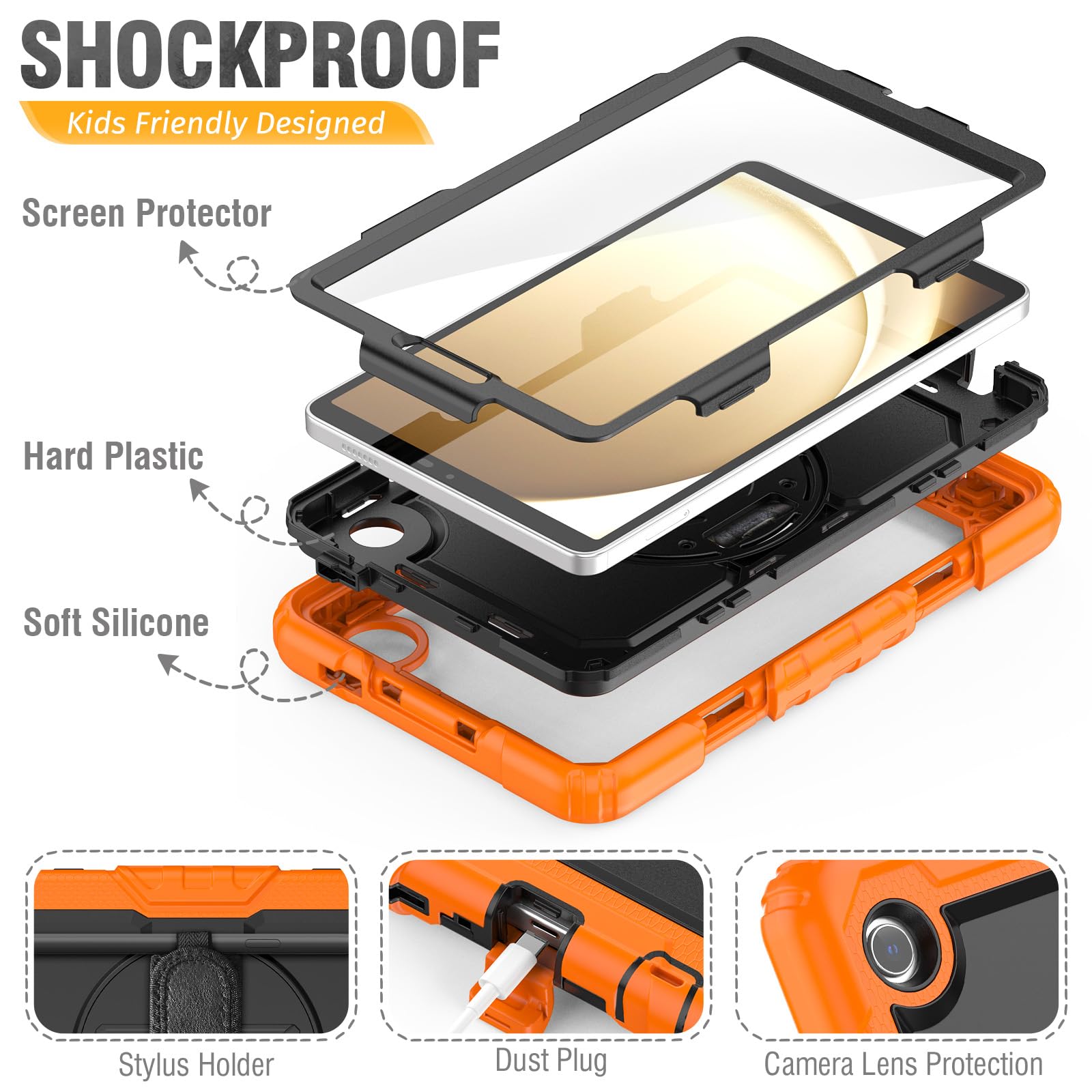 Shockproof & Screen Protector : This Samsung Galaxy Tab A9 case is made of anti shock material, soft silicone, hard PC shell and built-in screen protector (you can use your own screen protector if you want), with its sturdy structure to protector your tablet from shock, drop, scratch or accidental damages in daily use.