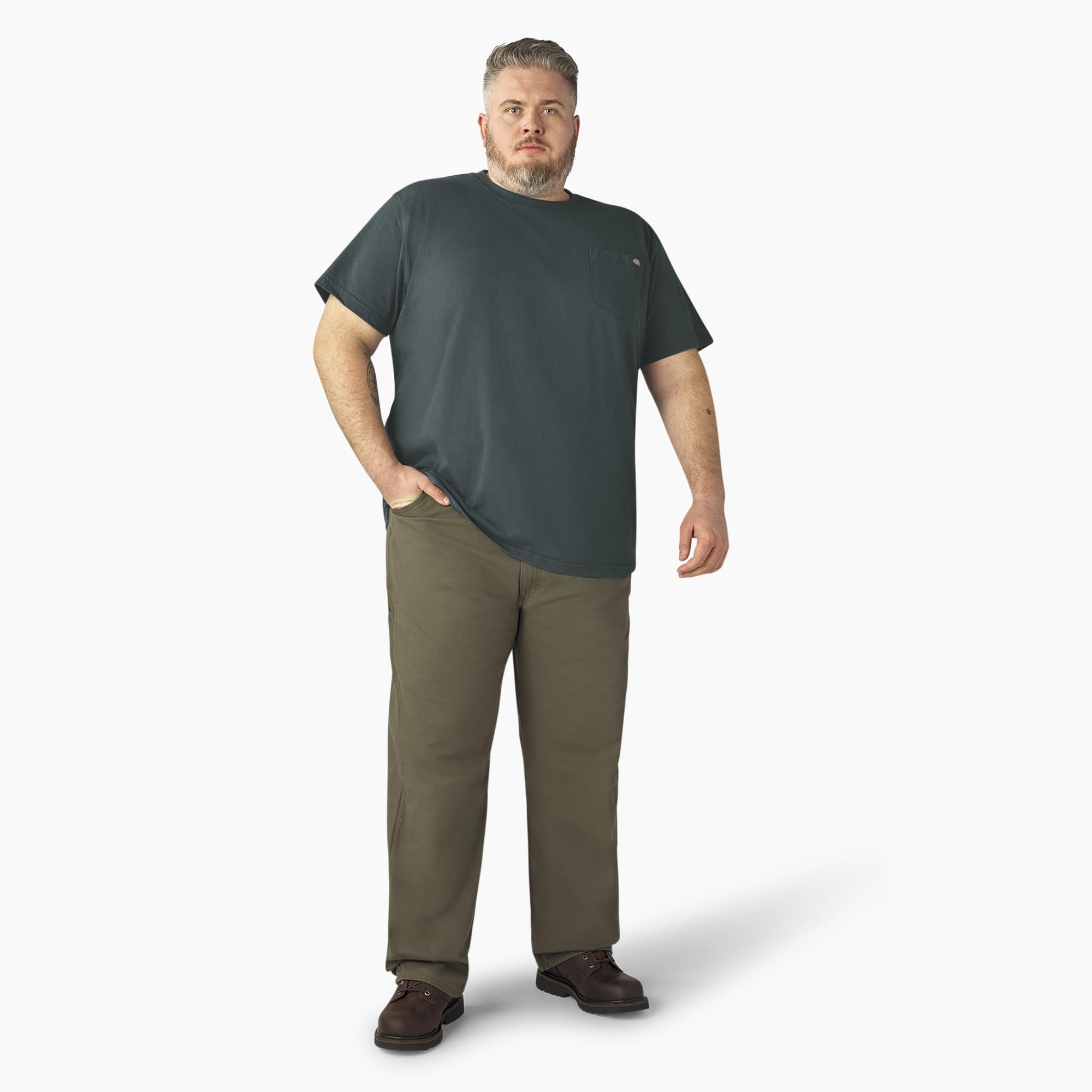 Description Hard-working men everywhere will be comfortable in the Dickies' Short sleeve heavyweight crew neck t-shirt. Made of a jersey knit material, this heavyweight cotton blend is durable, and designed with cotton comfort. On top of the fabric durability, The taped neck and shoulder seams up the ante on strength for longer wear.
