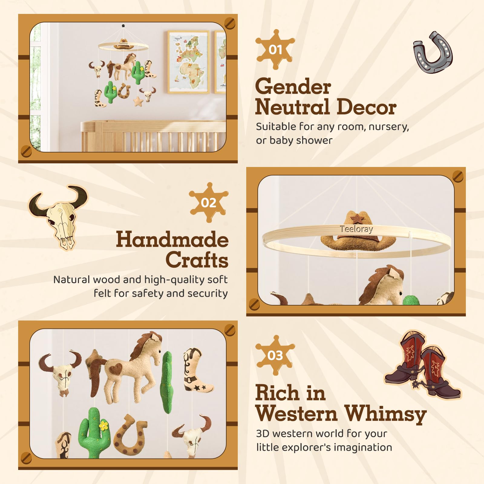 Unforgettable Western Gift: Presented in a gift box, this handmade western party decorations baby mobile is the ultimate choice for baby showers, gender reveals, or newborn celebrations. Its unique cowboy craftsmanship and heirloom quality will delight parents seeking meaningful, photo-worthy nursery decor that tells a story of the wild west.