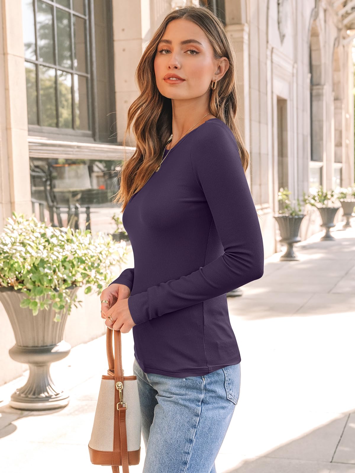 Long sleeve ribbed crewneck shirts for women, business casual dressy tops in fall & winter, suit for office,outdoor,home