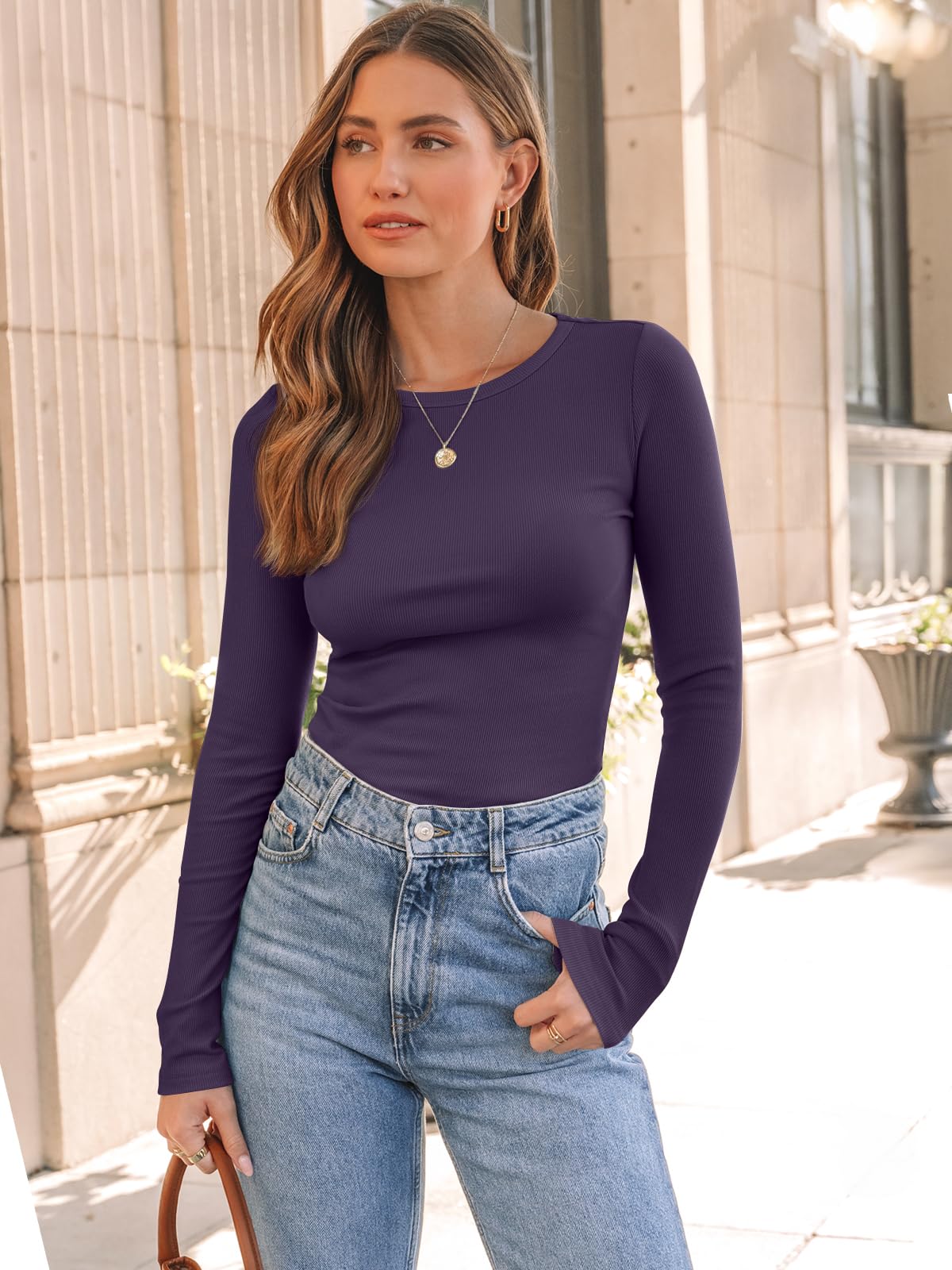 CHIC DESIGN: Basic tops for woman designed with long sleeves, fleece lined, solid color, crewneck, ribbed knit, cozy, stretch fitted, our casual tees will be your faves season after season