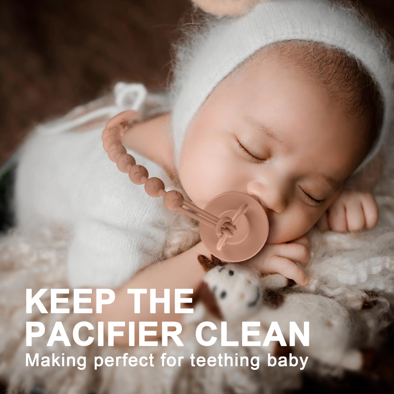 IDEAL PACIFIER CLIP: Our silicone pacifier clip comes in neutral colors (suitable for boys and girls) and works well to keep pacifiers clean—ideal for new moms. It’s compact and lightweight, attaching easily to baby’s clothes and fitting into bags or pockets. Whether you’re running errands, traveling, or out for walks, it keeps pacifiers within reach, prevents loss, and keeps them clean