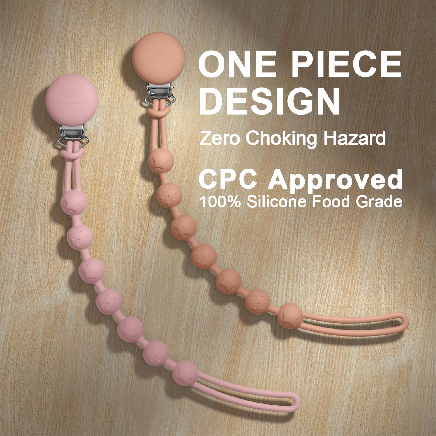 FOOD GRADE SILICONE: The beads of our pacifier clip are made from 100% pure food-grade silicone—a material we carefully pick for its dependable safety, letting you use the clip with total ease