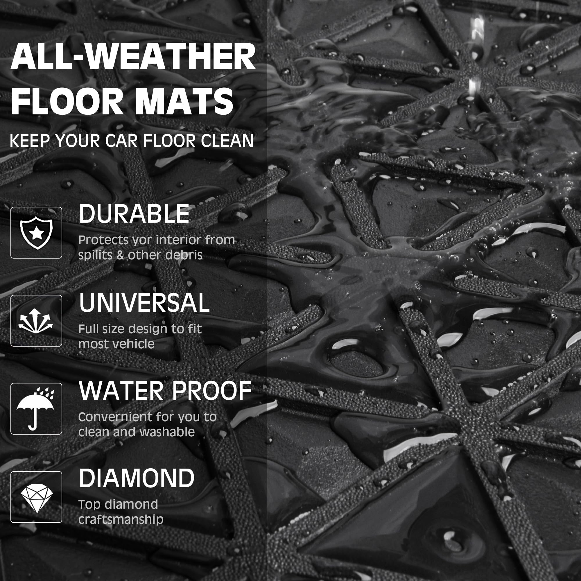 FIERCE GRIPPING POWER: The bling rubber car mats use anti slip nail bottom on the back of the mats, which can grip your vehicle’s carpet tightly to keep these floor mats from sliding or shifting during use. Make your driving more safety and enjoy driving pleasure. Upgrade now and ride in comfort and style with our exclusive sparkly diamond rubber car mat set