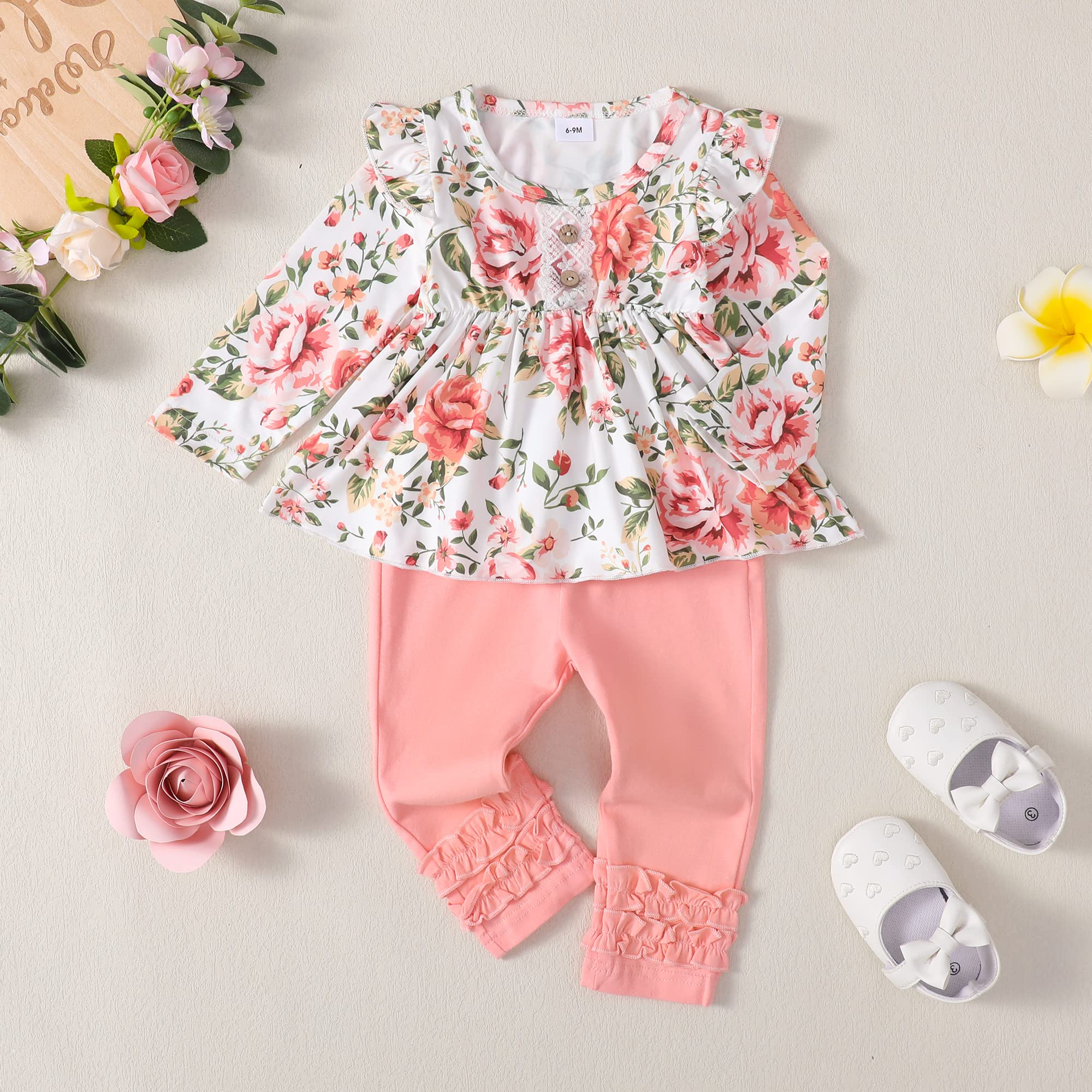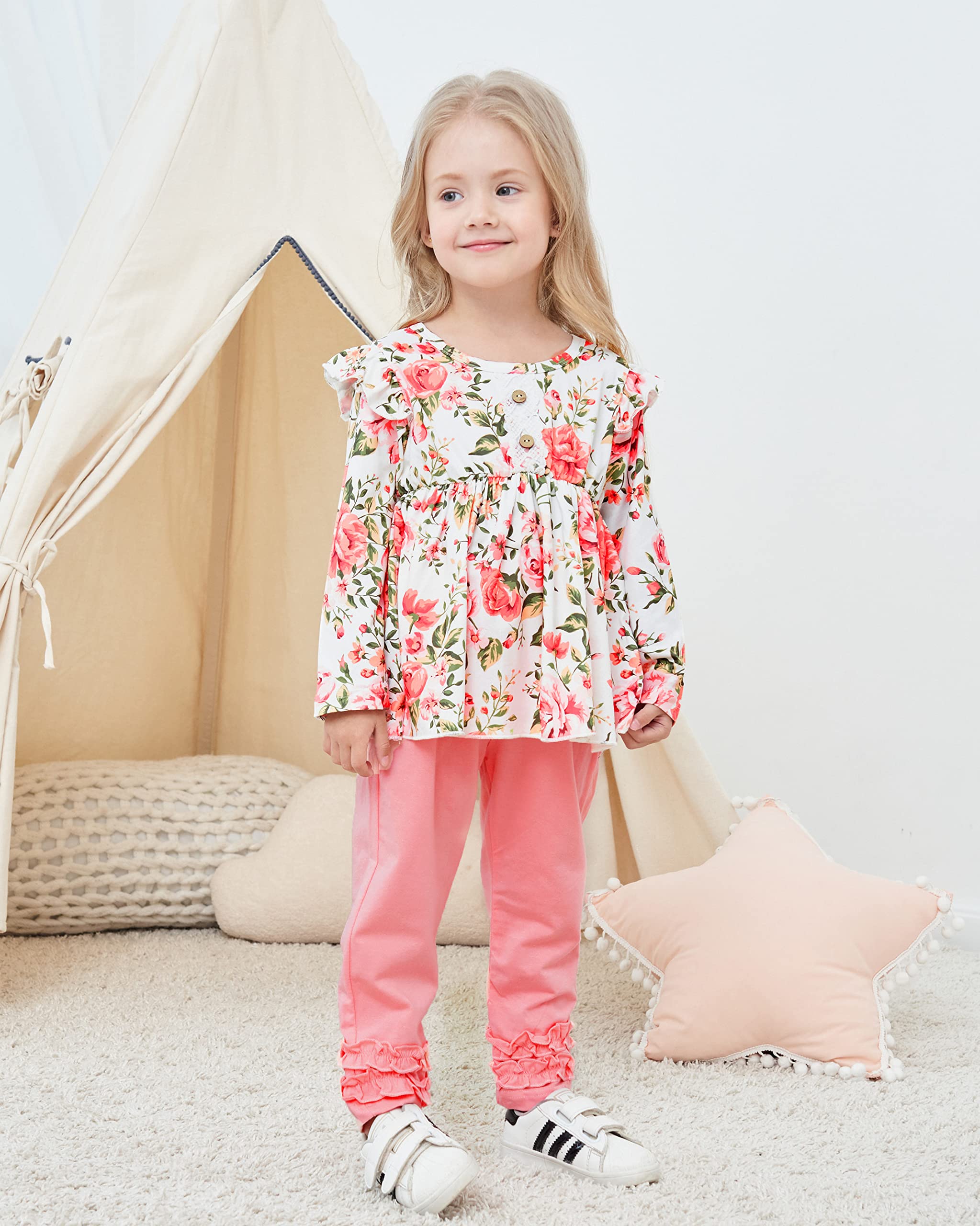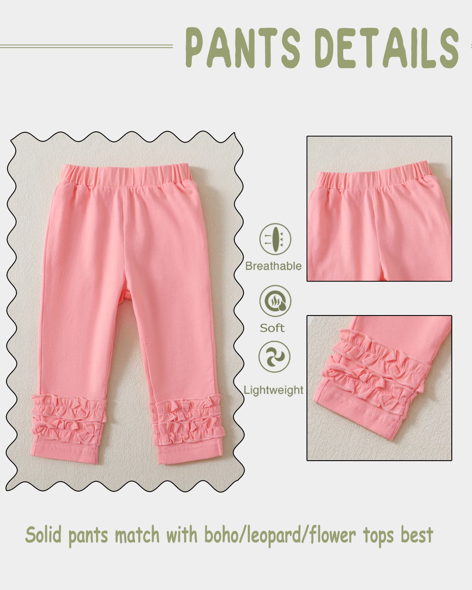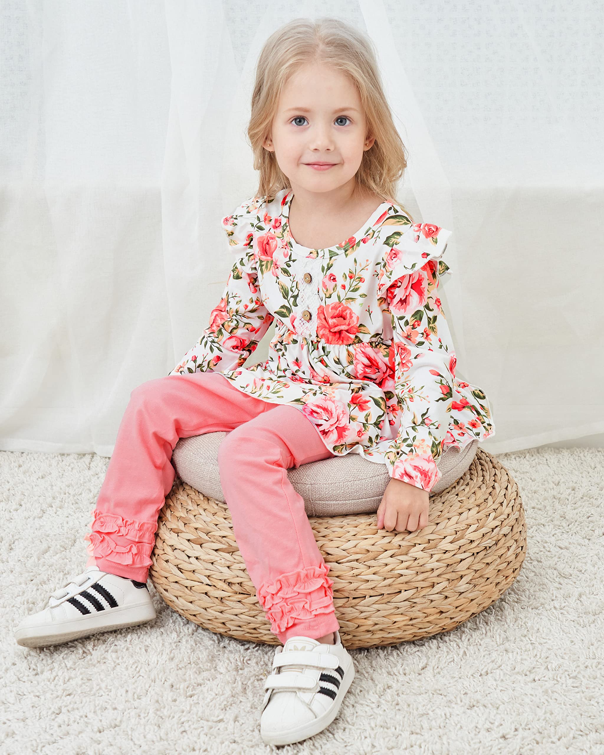 Design: Flower/Leopard/stripe ruffle long sleeve shirt, match with solid color pants, simple yet cute.