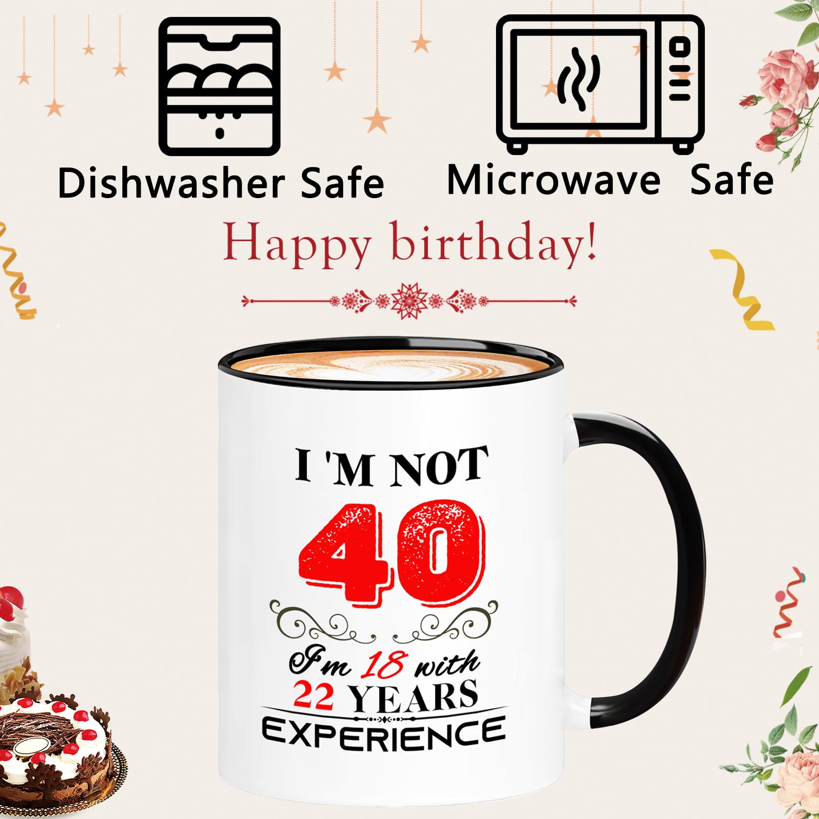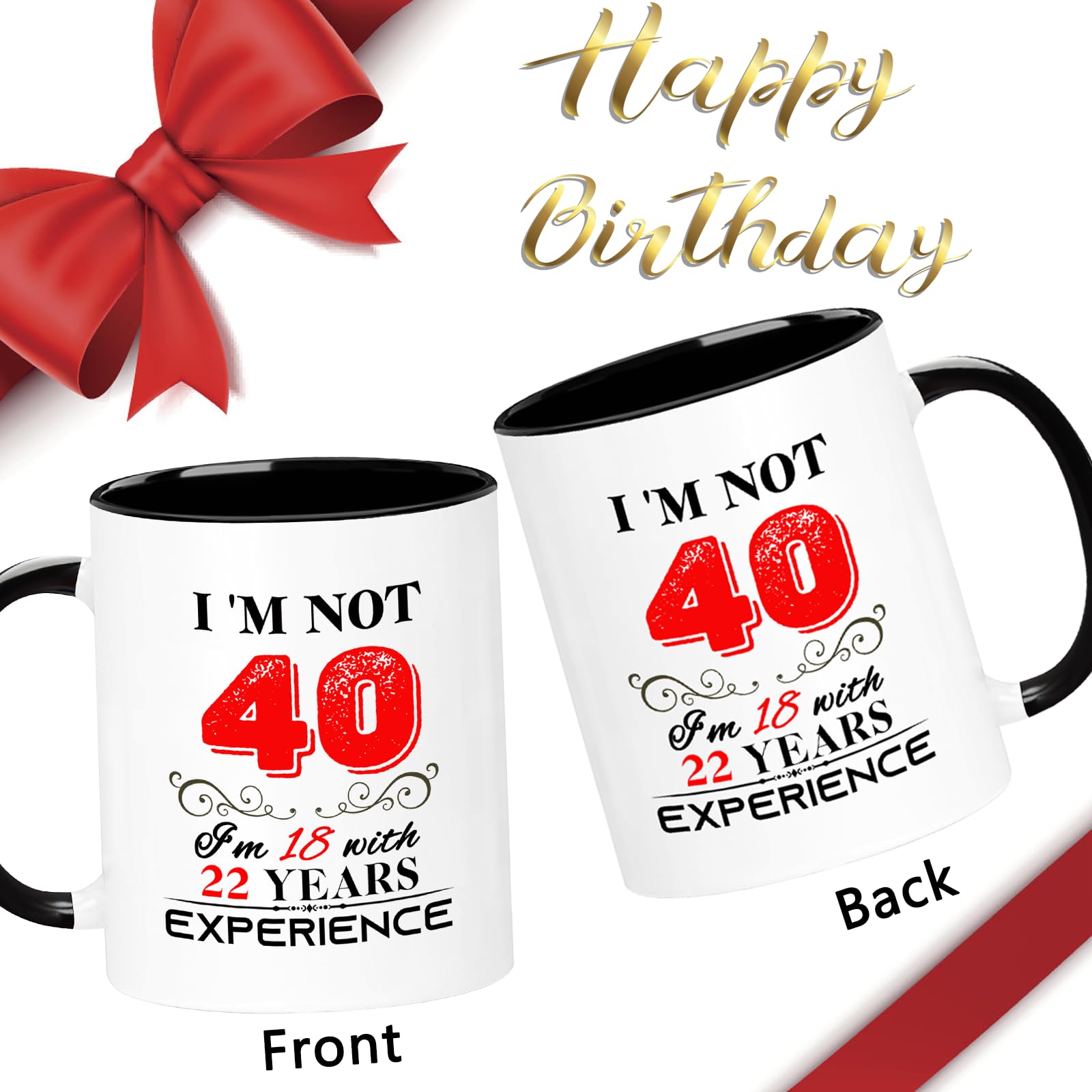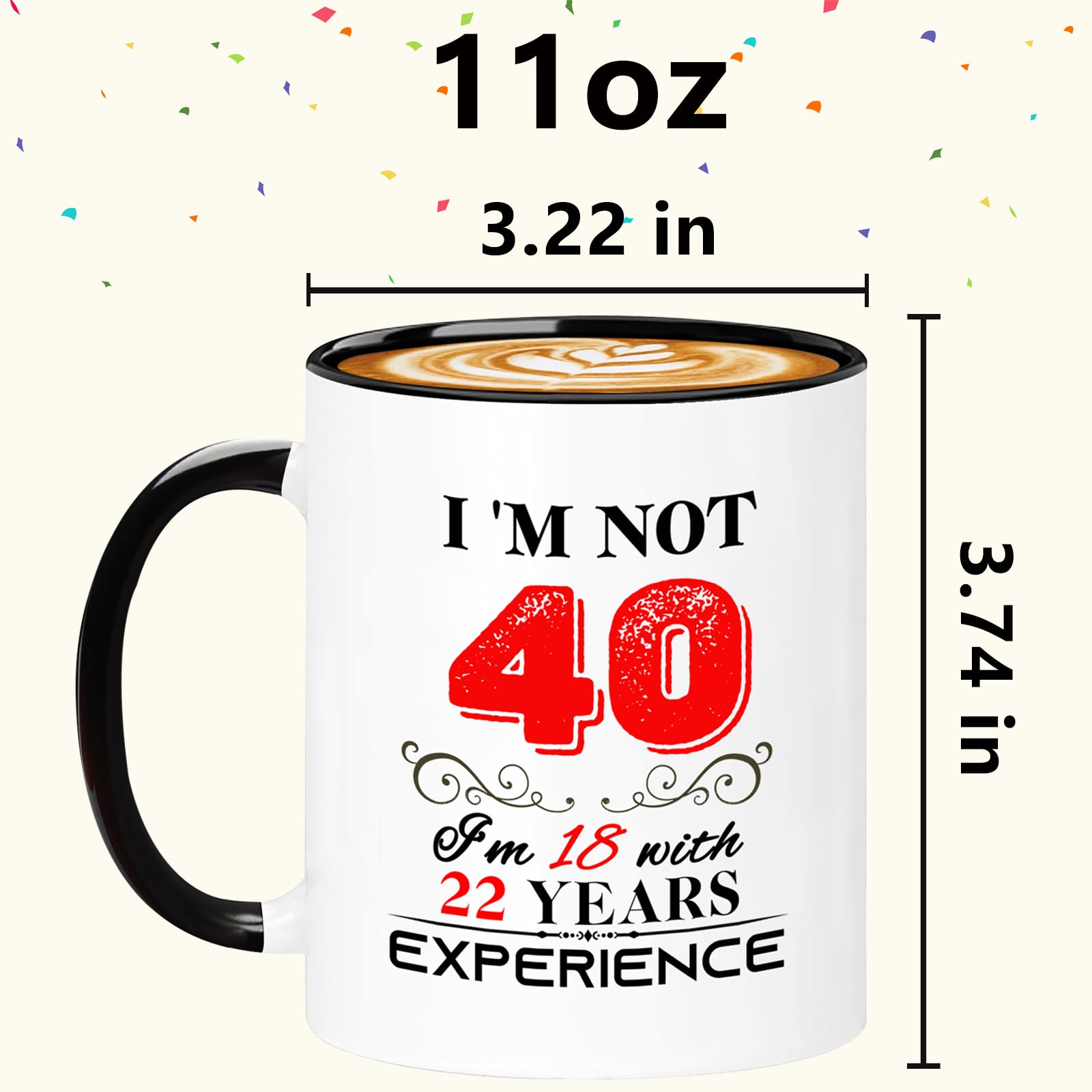 【Birthday Gift】: This funny "I'm not 40, I'm 18 with 22 years experience" Mug is the perfect birthday gift for a 40 year women men! Give it to your mom, dad, papa, mama, brother, sister, husband, wife, aunt, uncle, cousin, son, daughter, boyfriend, girlfriend, boss, coworkers, bestie, granddaughter, or your best friend for her he birthday.