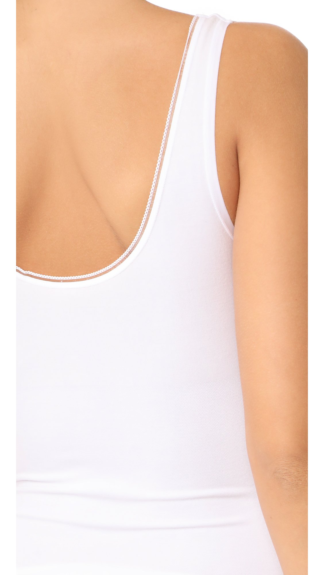 This 2-way shaping tank has delicate neckline detail and can be worn as a scoop neck or a v-neck.