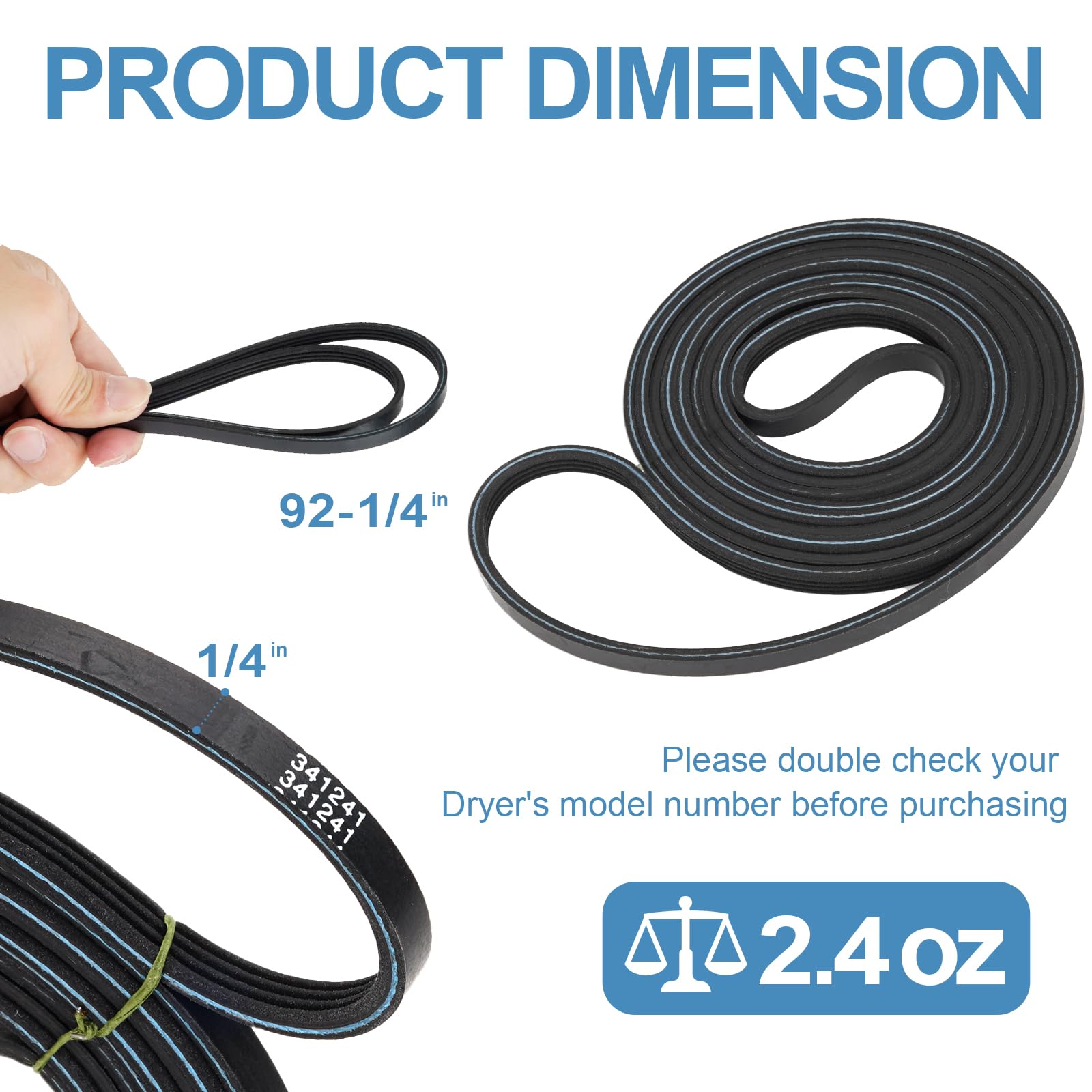 【PREMIUM QUALITY & RELIABLE FIT】Crafted from high-quality, durable rubber and rigorously tested, this Multi Rib Belt is built to deliver the long-lasting, stable performance you can count on. Measuring 92 1/4 inches in length and 1/4 inch in width with 4 ribs, the 341241 belt is designed for a precise fit. For your complete peace of mind, we recommend double-checking your model number before ordering.