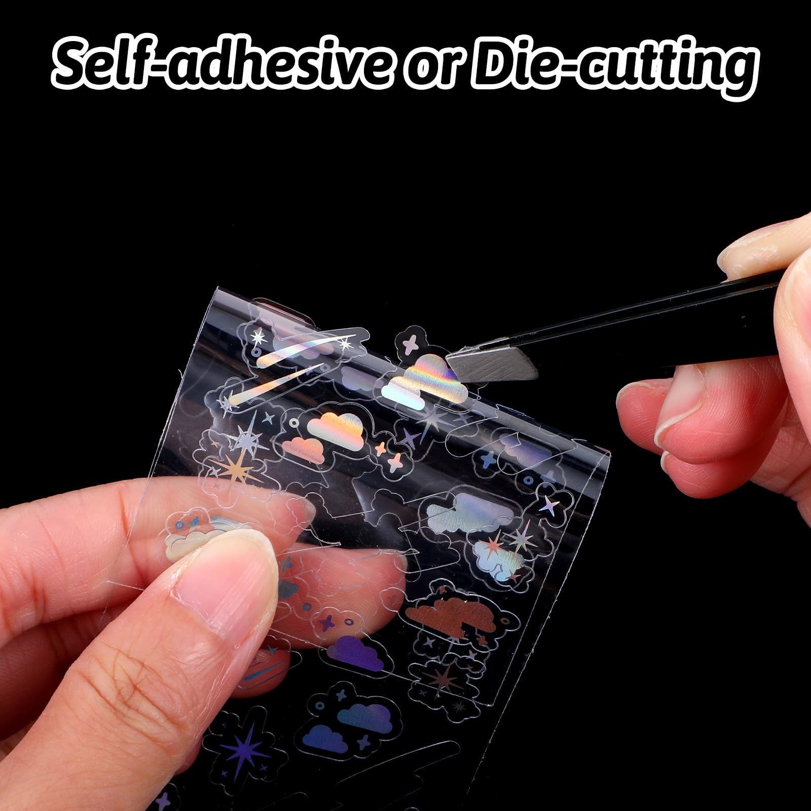 【Easy to Use】Our holographic stickers are designed for convenience. They are self-adhesive, just peel off the protective film on the back and stick them to any smooth and clean surface. Clear stickers are very easy to use and perfect for a variety of DIY projects