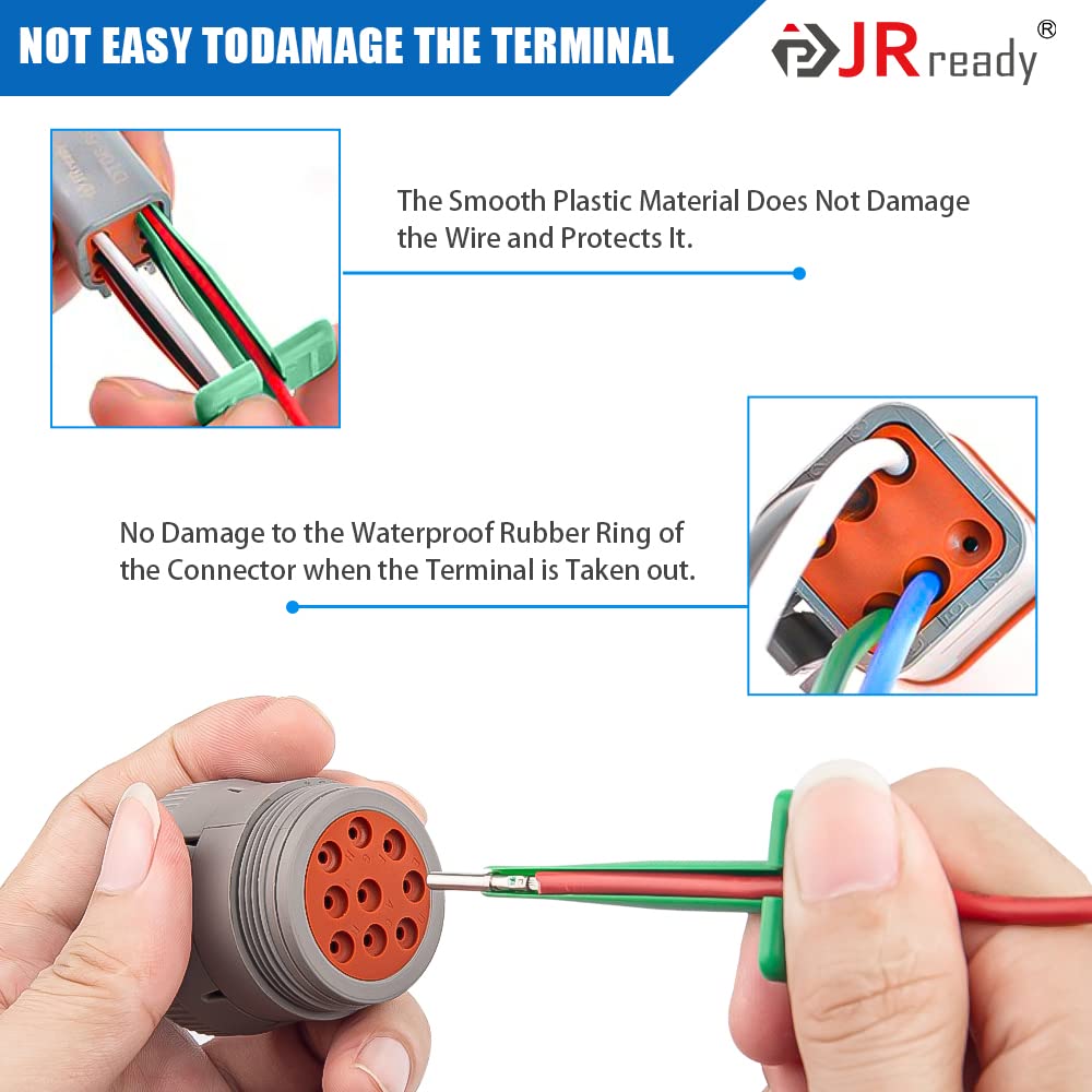 【Tools Compatibility Matters】1.If you're unsure if our product fits your connector, contact our Amazon customer service with your application details. We will recommend the correct tool for you. 2.Using incorrect tools may damage connectors or fail to remove terminals. If you encounter issues, contact us with your connector and terminal diameters, and connector aperture. 3.We only support after-sales issues for JRready branded products. Ensure our product has the JRready logo, as we do not handle issues with counterfeit items.