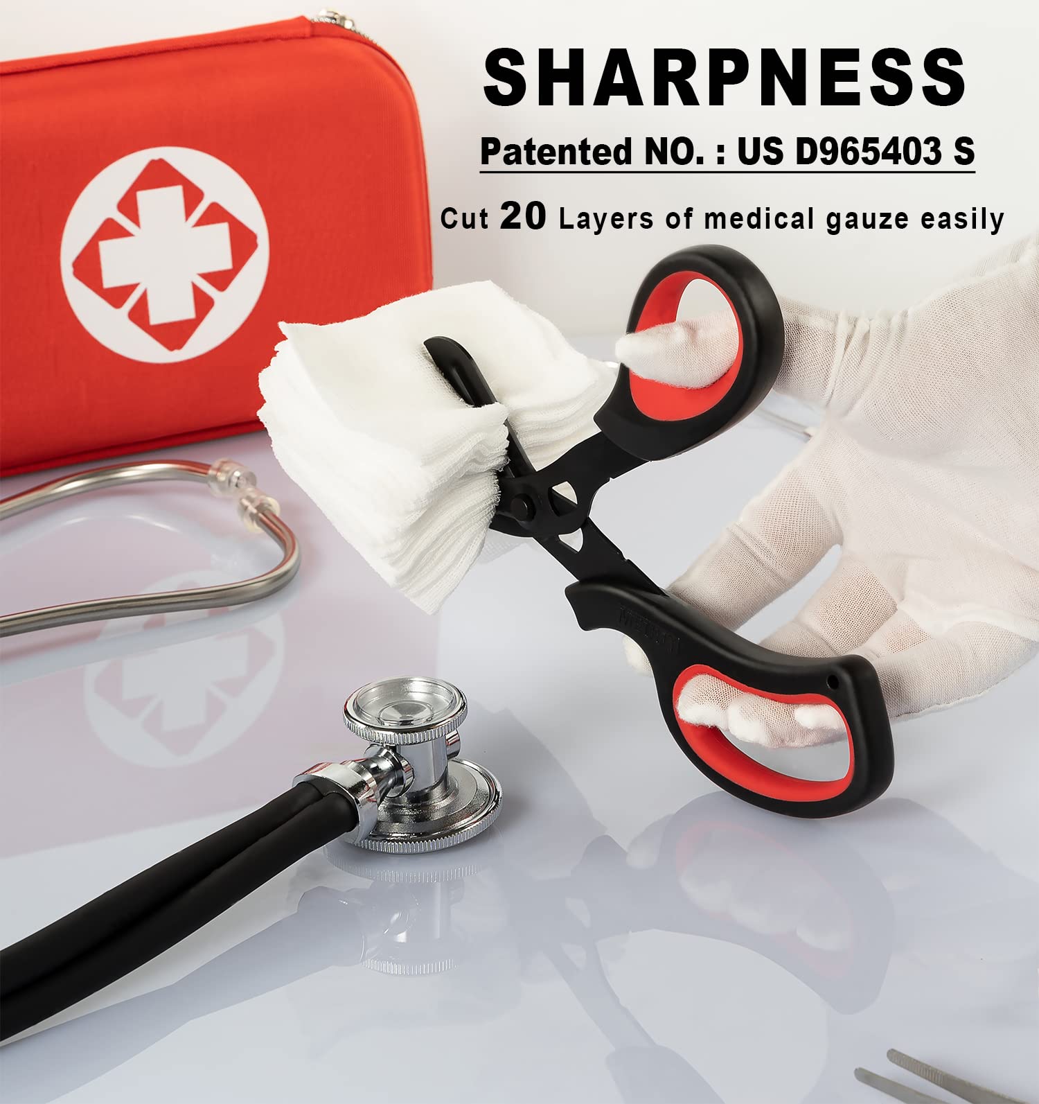 ใPERFECT for FIRST AIDใ: 2 pack 8 inches patented medical scissors, Black/grey+Black/red. Material: Stainless Steel 440, Polypropylene + TPE