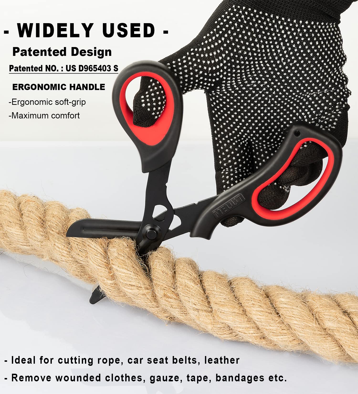 ใALL-PURPOSใ: Cut anything safely and efficiently with these sharp scissors. Ideal for cutting ribbon, burlap, rope, car seat belts, leather, remove wounded clothes, gauze, tape, bandages etc. Perfect for outdoors, first aid, nurse, doctor, firefighter, gardening, household.