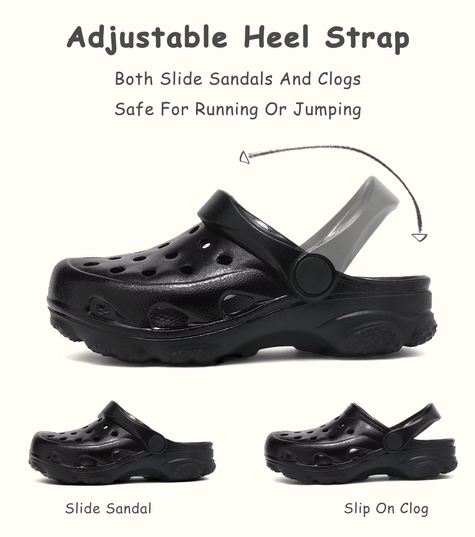 Two Ways of Wearing: These slip-on clogs are easy to take on and off. Both clogs and slide sandals, barefoot or with socks, casual style is perfect for all seasons and occasions.