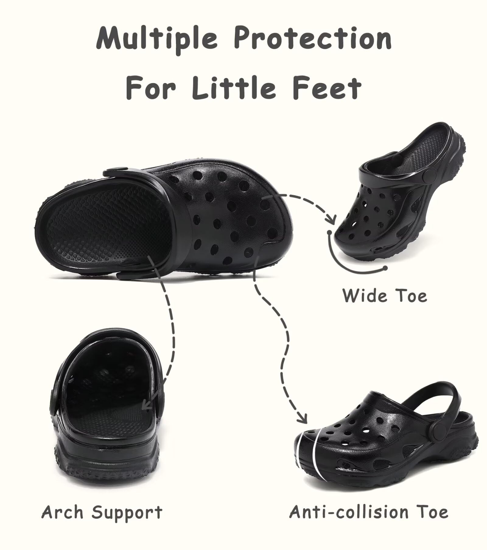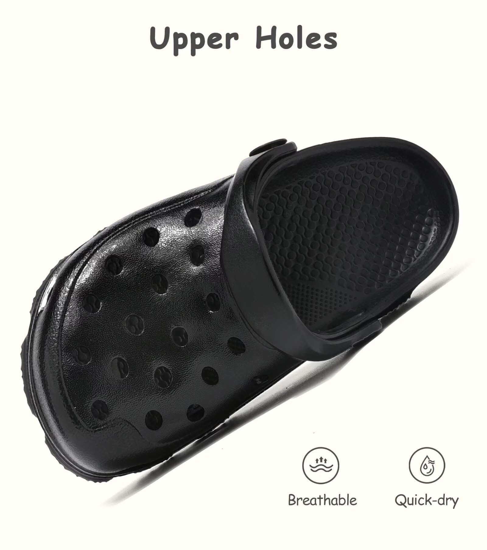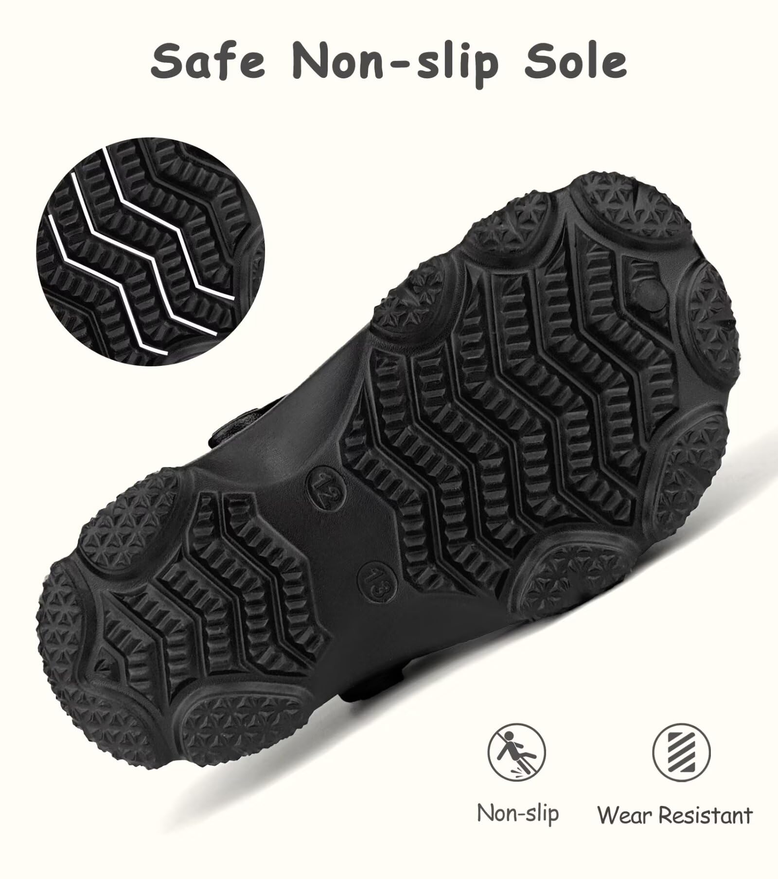 Non Slip Clogs: Non-slip sole texture and midsole non-slip particle design, allowing children to step on water confidently. Perfect for adventurous boys/girls exploring the world.
