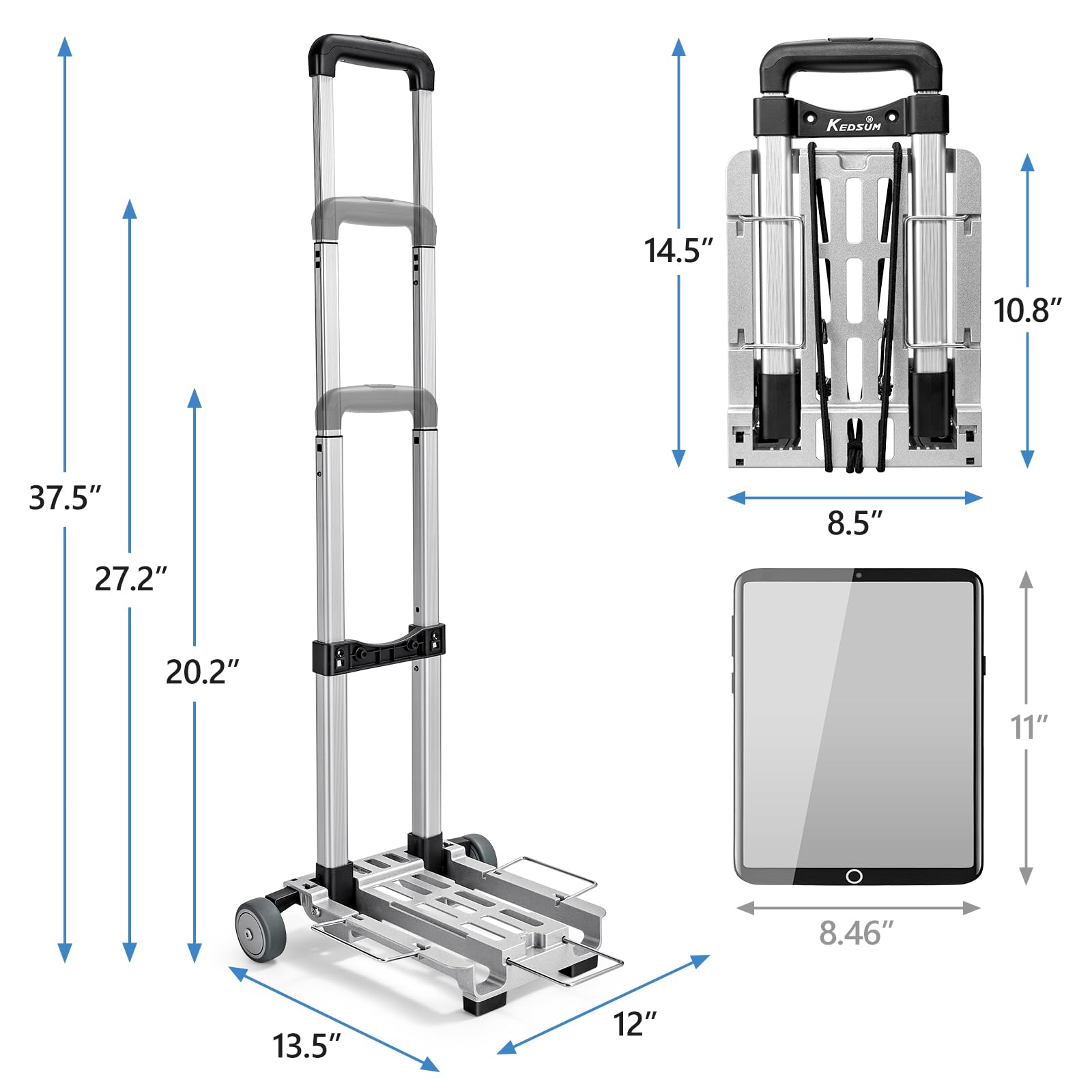 Wide Application: This luggage trolley cart with wheels will make your life and travel easier. Moving/airport luggage/travel are all done! KEDSUM mini luggage cart with anti-slip platform, no more worrying about your luggage falling off. Meeting the needs of family, travel and business, very lightweight and folds up nice to put under the airplane seat
