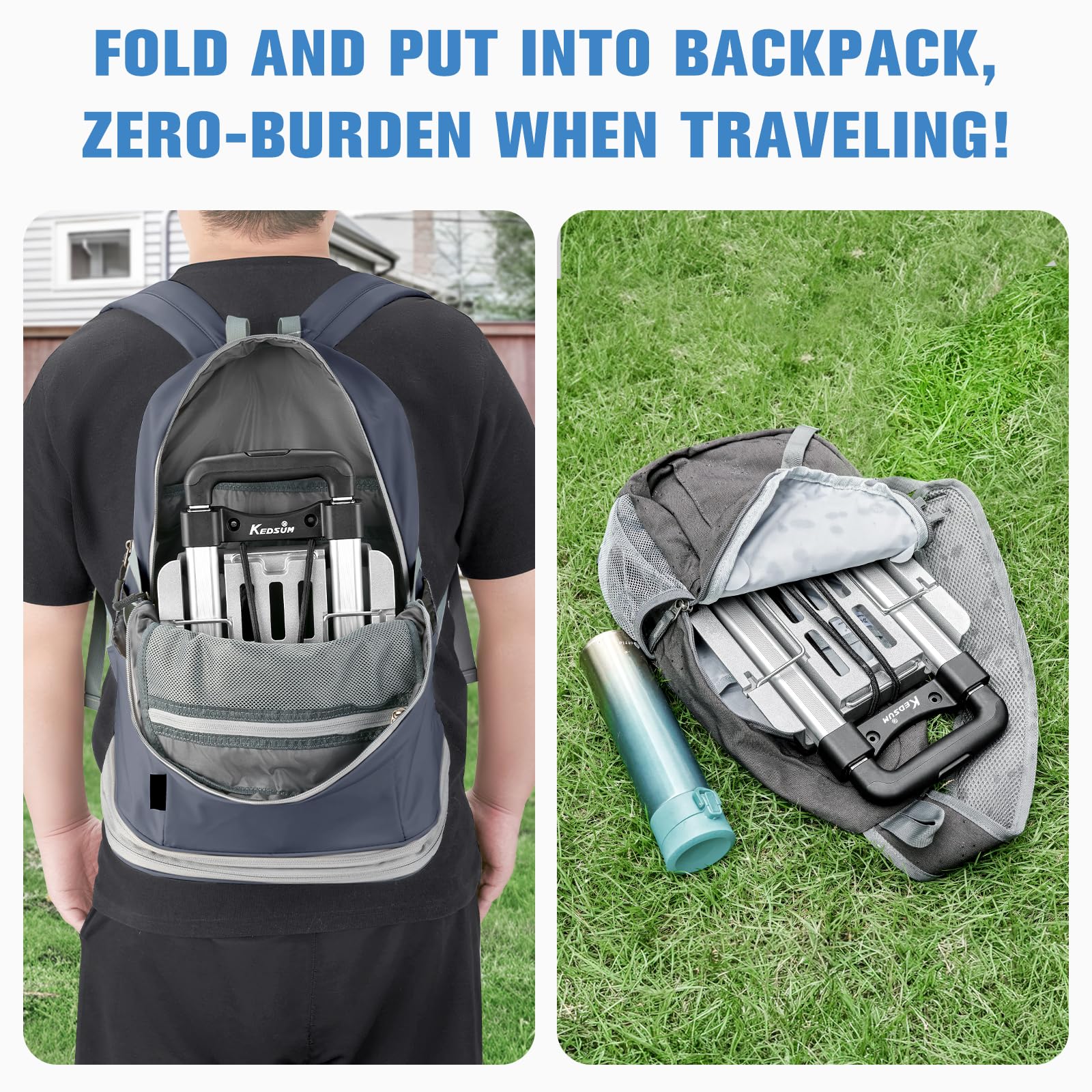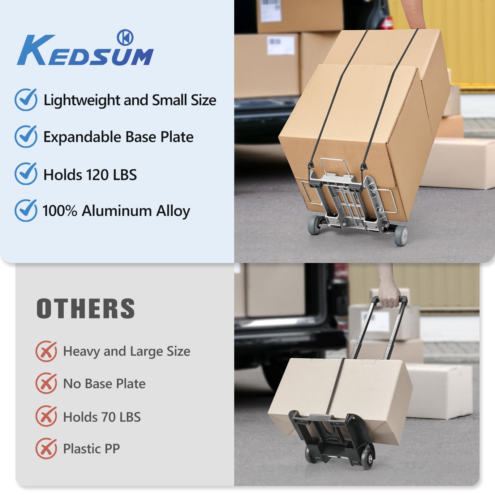 Heavy Duty and Durable: KEDSUM mini luggage cart can Hold Up to 120 lbs capacity and not easy to shake when pulling. It is a good partner for carrying water, luggage, instrument. The folding luggage cart comes with silent rubber wheels, it is well-suited for various terrains. Makes your transportation easier