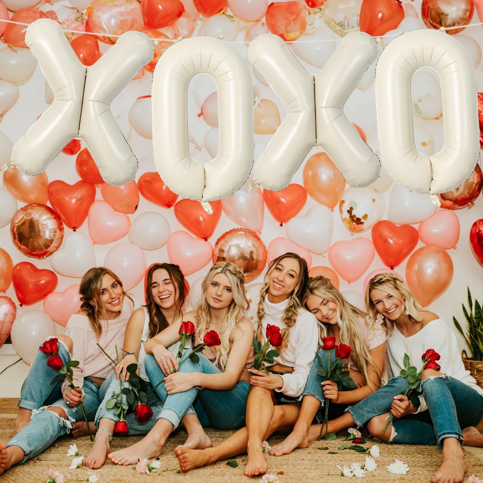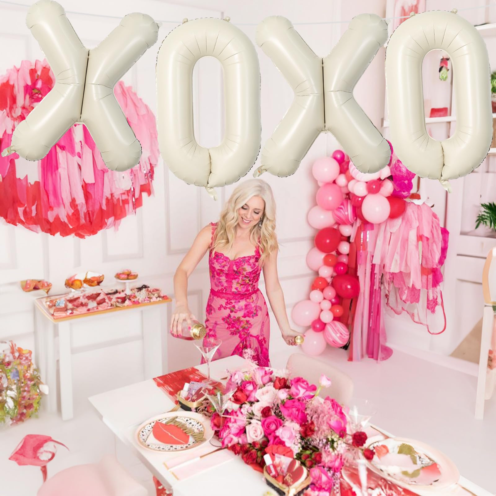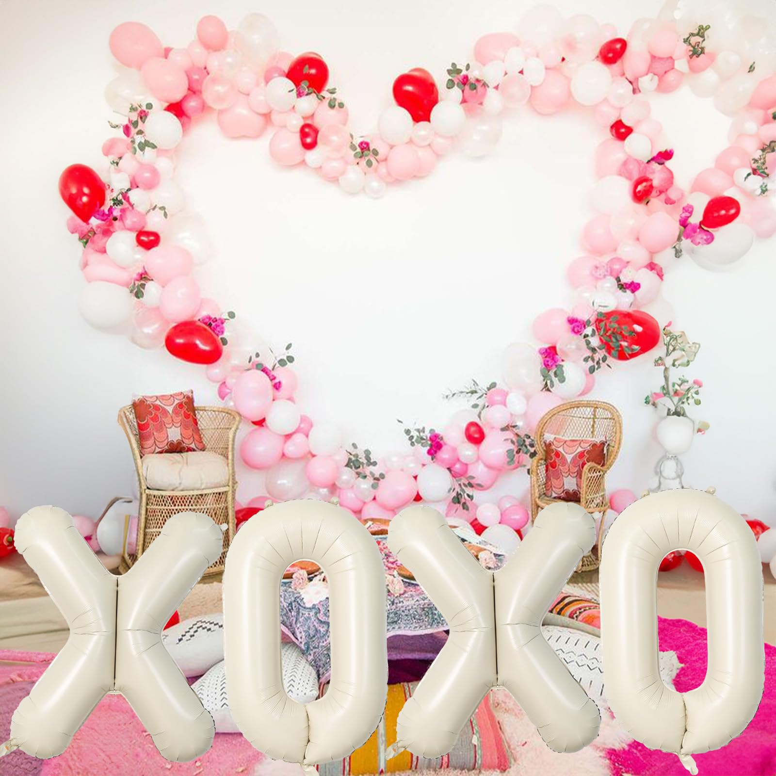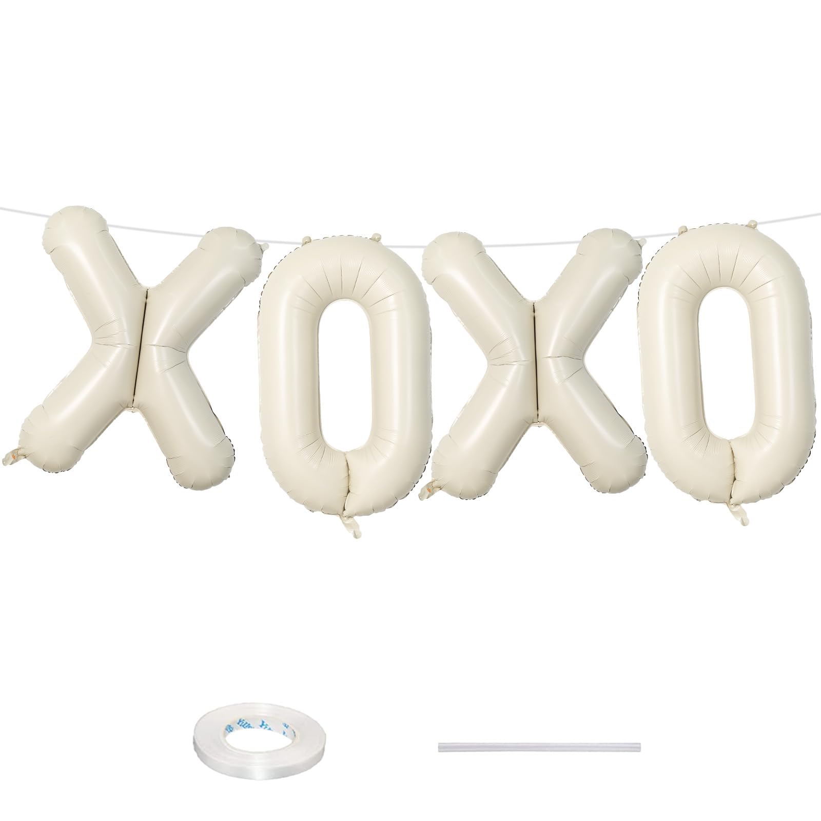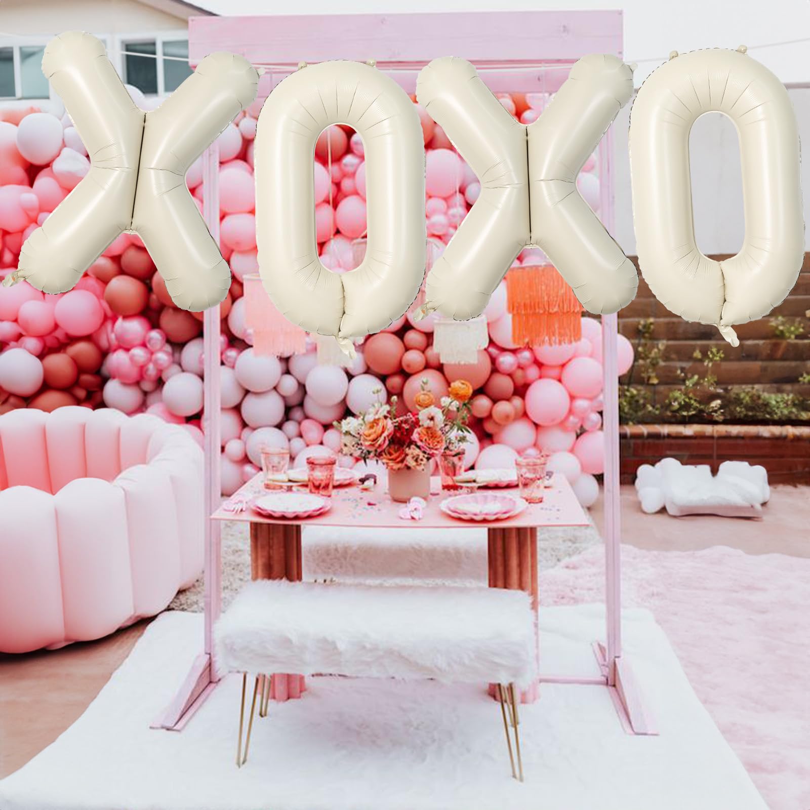 💕 XOXO Balloons for Wedding Gift 💕 You will get 4 pieces 40 inch large beige X + O + X + O foil letter balloons with 1pc balloon ribbon, perfect for valentines day wedding bridal shower anniversary engagement party decorations supplies.
