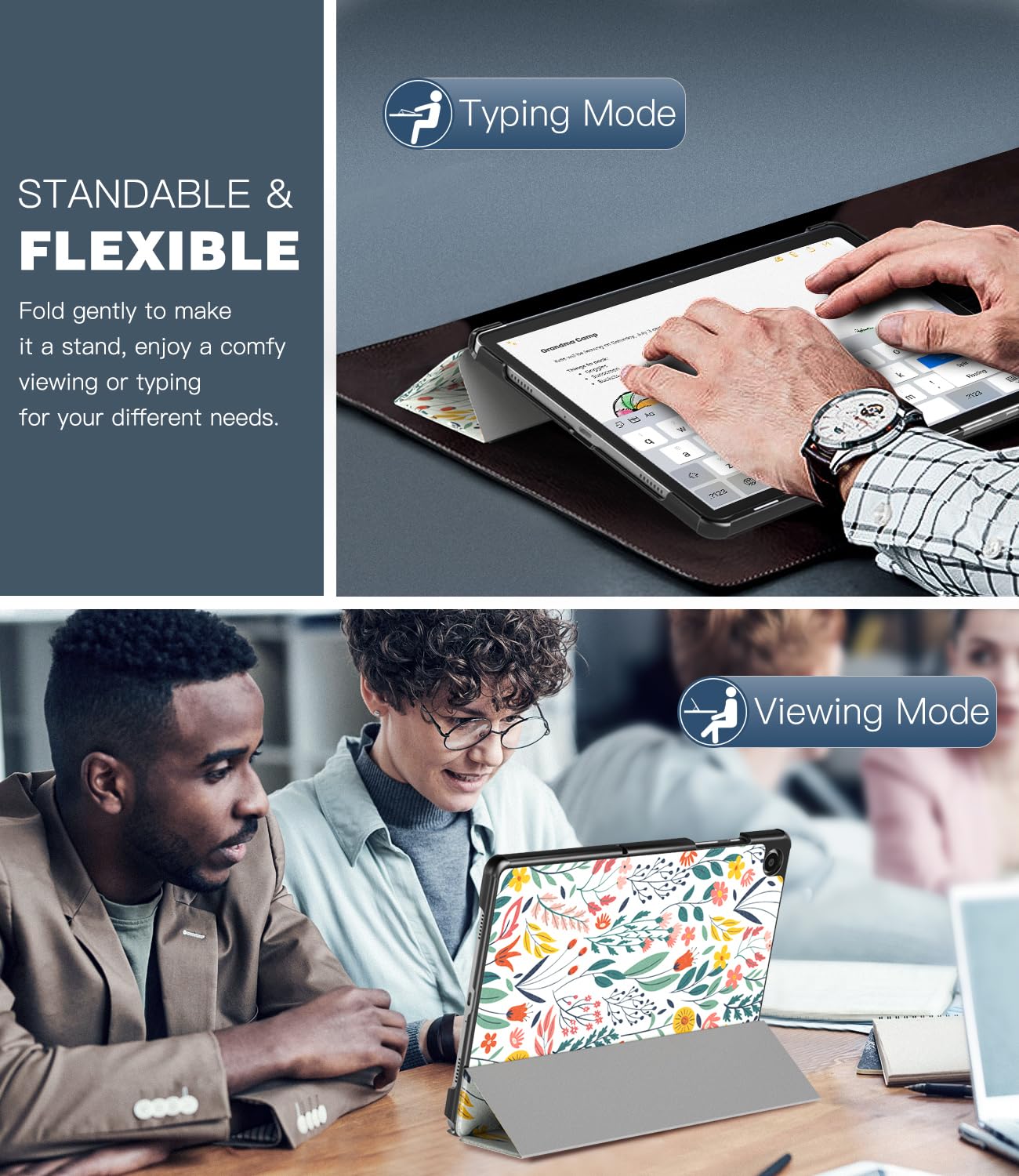 Adjustable Stand Angles: The top of this Galaxy Tab A9 Plus Case folds back to make a stand, which provides a sturdy stand position for both viewing and typing. Free your hands when watching, reading, or writing, a good way to alleviate neck strain