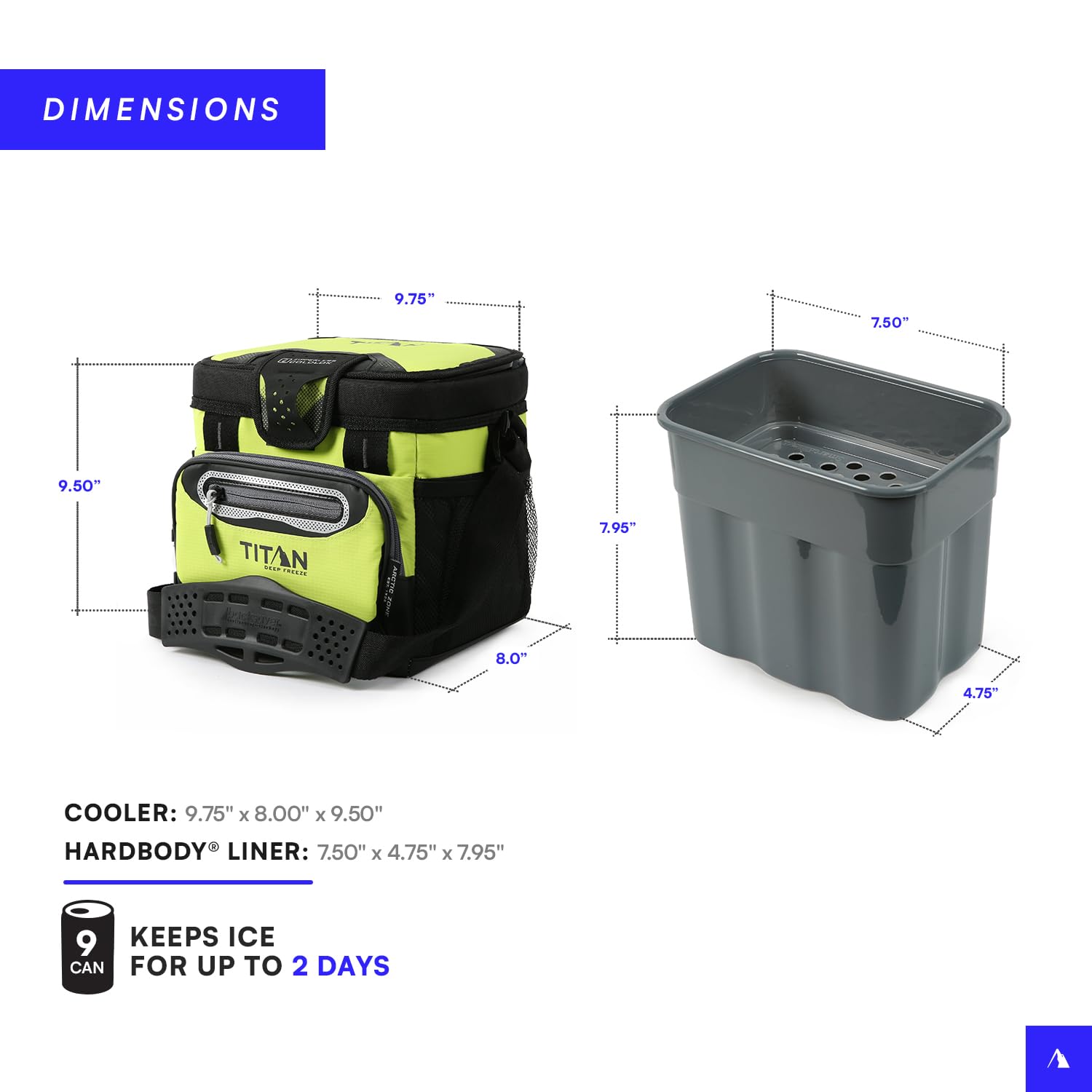 TITAN DEEP FREEZE ZIPPERLESS HARDBODY COOLER: Zipperless cooler features a patented, "flip-open" Zipperless lid for quick access to food and drinks; Keeps ice for up to two days* and holds up to 9 cans
