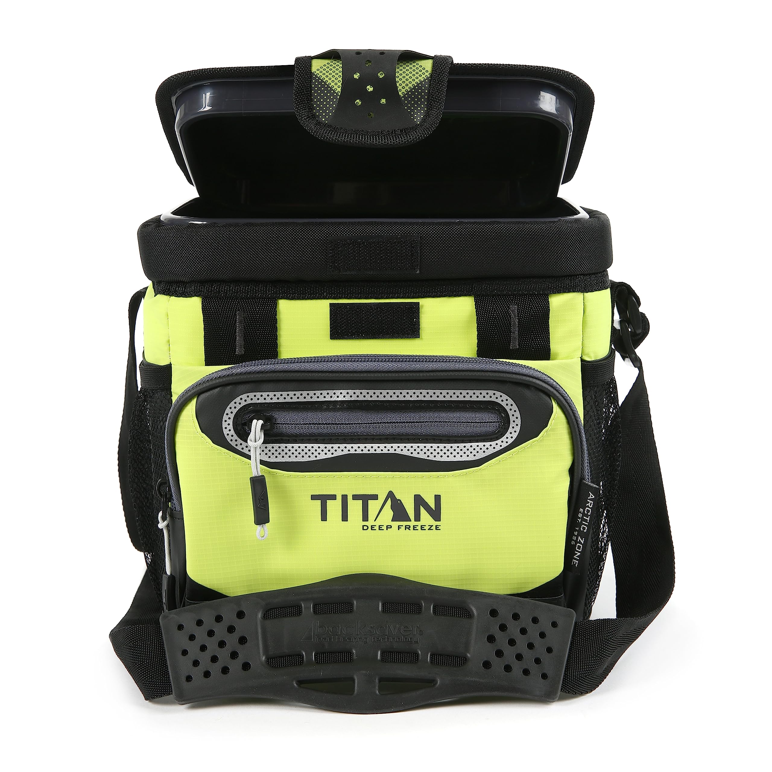 The Arctic Zone Titan Deep Freeze Zipperless Hardbody Cooler holds 9 cans and features a Zipperless lid for quick access to food and drinks. Deep Freeze High Performance Insulation with a radiant heat barrier provides long-lasting cold and is perfect for storing ice for up to 2 days. The cooler includes a removable HardBody Liner with SmartShelf that allows you to separate hard items from soft so that sandwiches and other soft foods don't get crushed. If you need more space, the SmartShelf easily removes to provide one large compartment. The cooler features a tough, water and stain-repellent exterior for easy cleaning and an adjustable Backsaver Shoulder Strap with an anti-slip shoulder pad that centers load weight for carrying comfort. The Arctic Zone Titan Deep Freeze Zipperless Hardbody Cooler is perfect for keeping food and drinks cold no matter where you go!