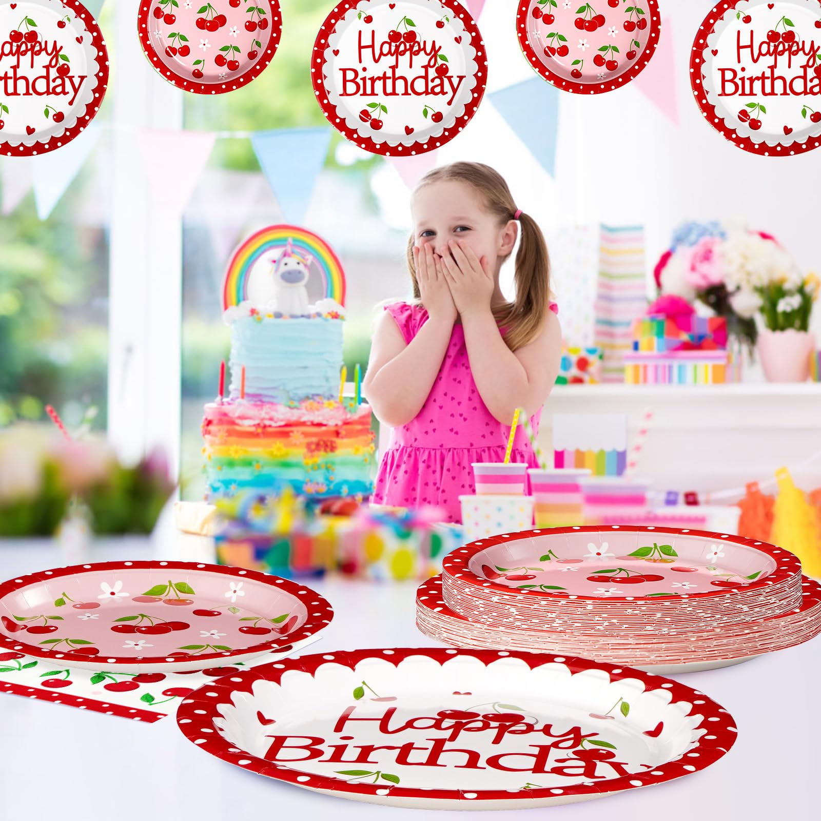 Cherry Design: Our cherry plates and napkins features cherry fruit design, with white flowers and green leaves. The red and white colors add a touch of cute feature, setting a welcoming tone for your cherry theme birthday party