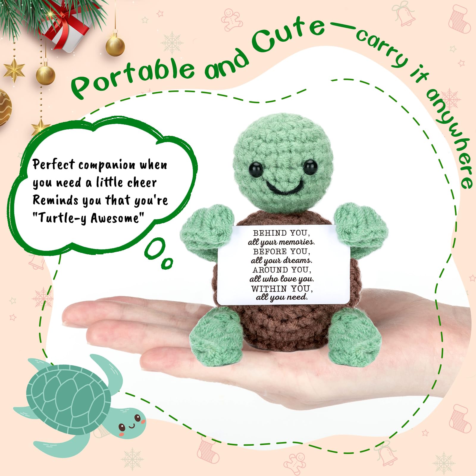College Graduation Gifts for Women: Handmade crochet cute turtles are knitted from wool yarn, with a soft and comfortable touch; About 2.3 x 1.4 x 3.5 inches, mini turtle with positive card can be carried everywhere, giving you positive energy at any time