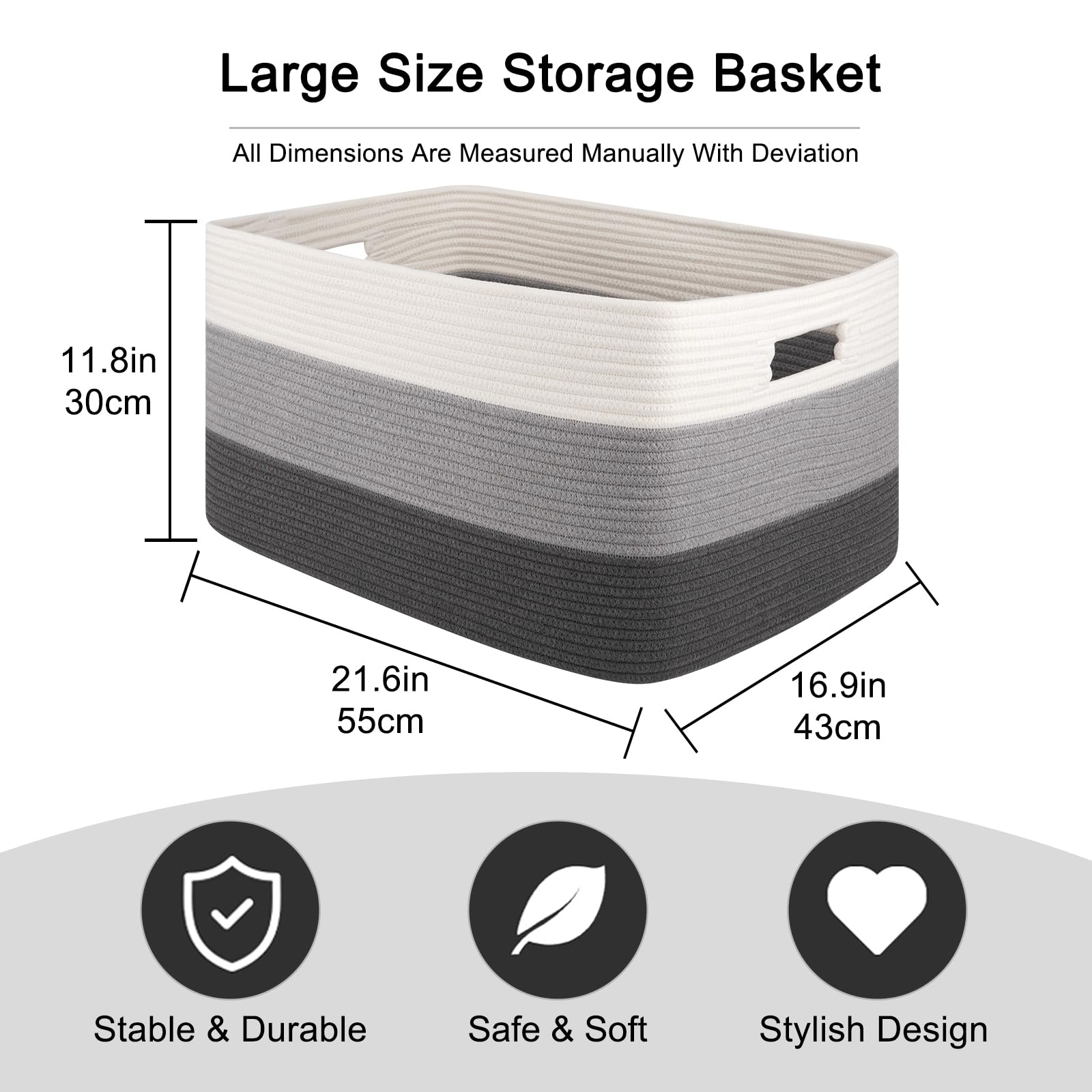 100% Cotton Rope Storage Basket:OIAHOMY woven baskets are made of 100% natural cotton, chemical and odor free, there are no sharp or hard edges to scratch floos, and safe for kids and pets. It is more firm than plastic basket