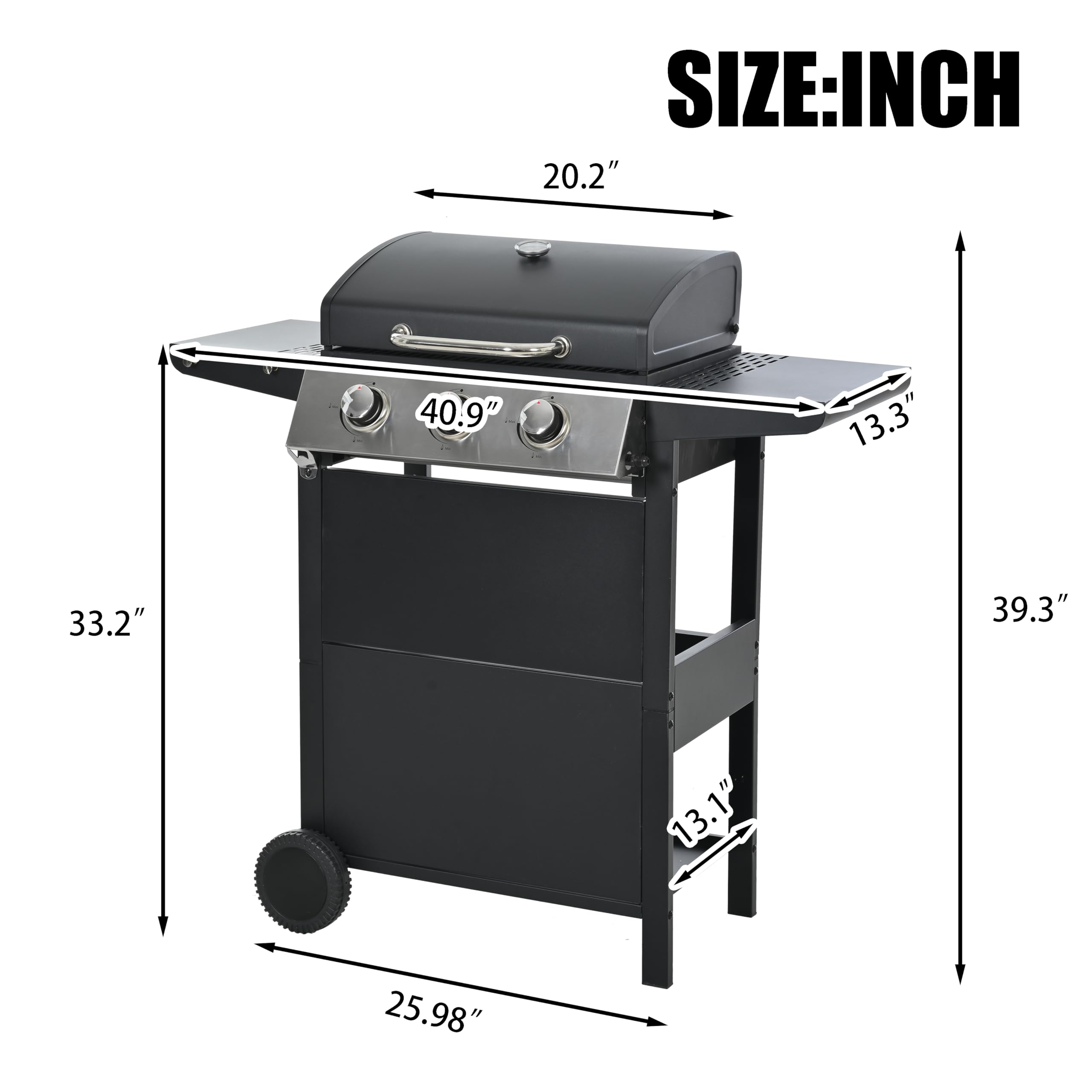 Equipped with four universal wheels with locking devices, it is flexible and stable. The unique propane gas tank storage compartment is cleverly designed, safe and beautiful, suitable for various outdoor occasions, from patios to backyards, and can be easily placed