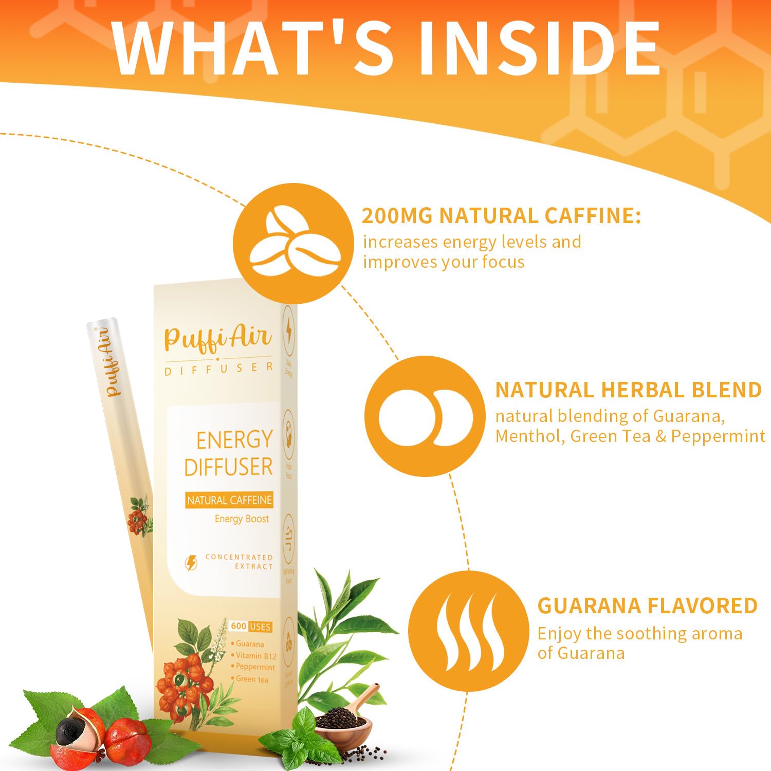 Powerful Energy-Boosting Blend: Infused with Guarana, Green Tea Extract, Peppermint, and Menthol, this herbal diffuser delivers a natural, sustained energy lift to fight fatigue and keep you focused throughout the day.