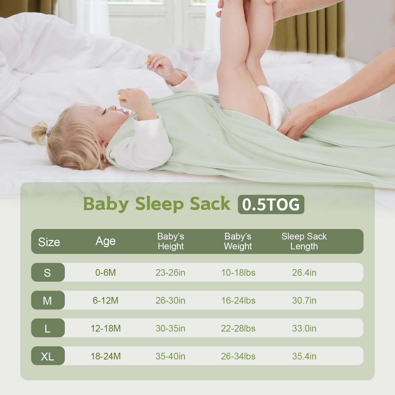Gentle and Comfy:Wrrernsin sleeping sack is crafted from 100% pure cotton fabric, soft and skin-friendly, with exceptional breathability to create a comfy sleeping space for babies. Meeting the safety standards of the US Consumer Product Safety Commission (CPSC), it ensures worry-free use for little ones. The 0.5 tog warmth level and sleeveless design effectively reduce underarm sweating, keeping babies dry and cozy all night—perfect for year-round use