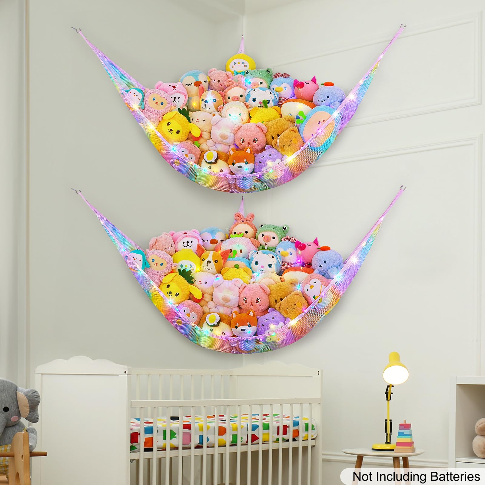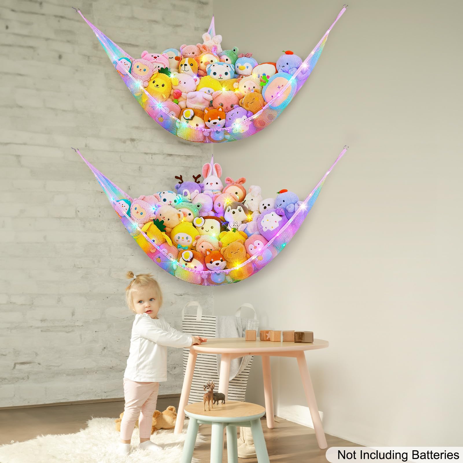 Stuffed Animal Net with LED Light: A strip light comes with the toy hammock and the light can adjust 8 different lighting modes