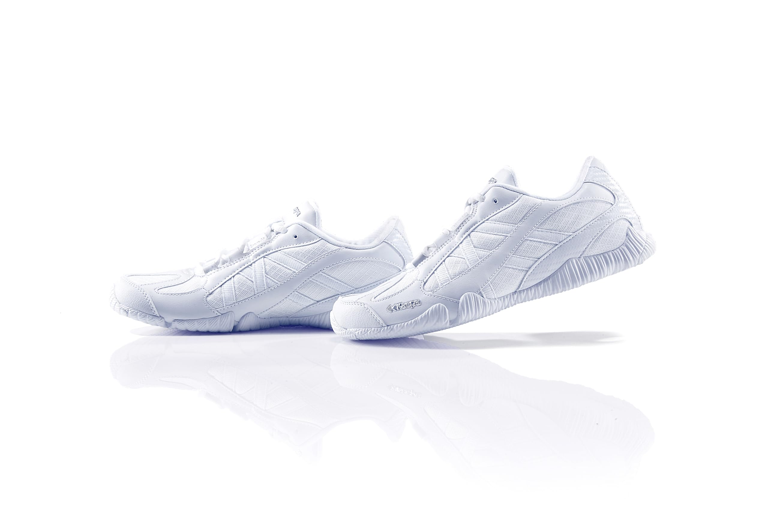Description Official Shoe of the Champions Cup State Nationals. Competition level. Only 6 ounces. Indoor only (blue mat, spring floor & similar).Waterproof Scotchguardtm coating keeps mesh cleaner. Technically advanced outsole engineered for enhanced flexibility and tumbling. Finest ultralight materials for superior flexibility, comfort and durability. Flexible construction combined with sleek toe bumpers for unrestricted tumbling. Upper of lightweight synthetic leather mesh and webbing for comfort with support and ventilation. APX, Extreme absorption polymer compound heel inset absorbs impact and improves cushioning. Ventilated tongue for comfort. Molded chrome metallic Kaepa logos.