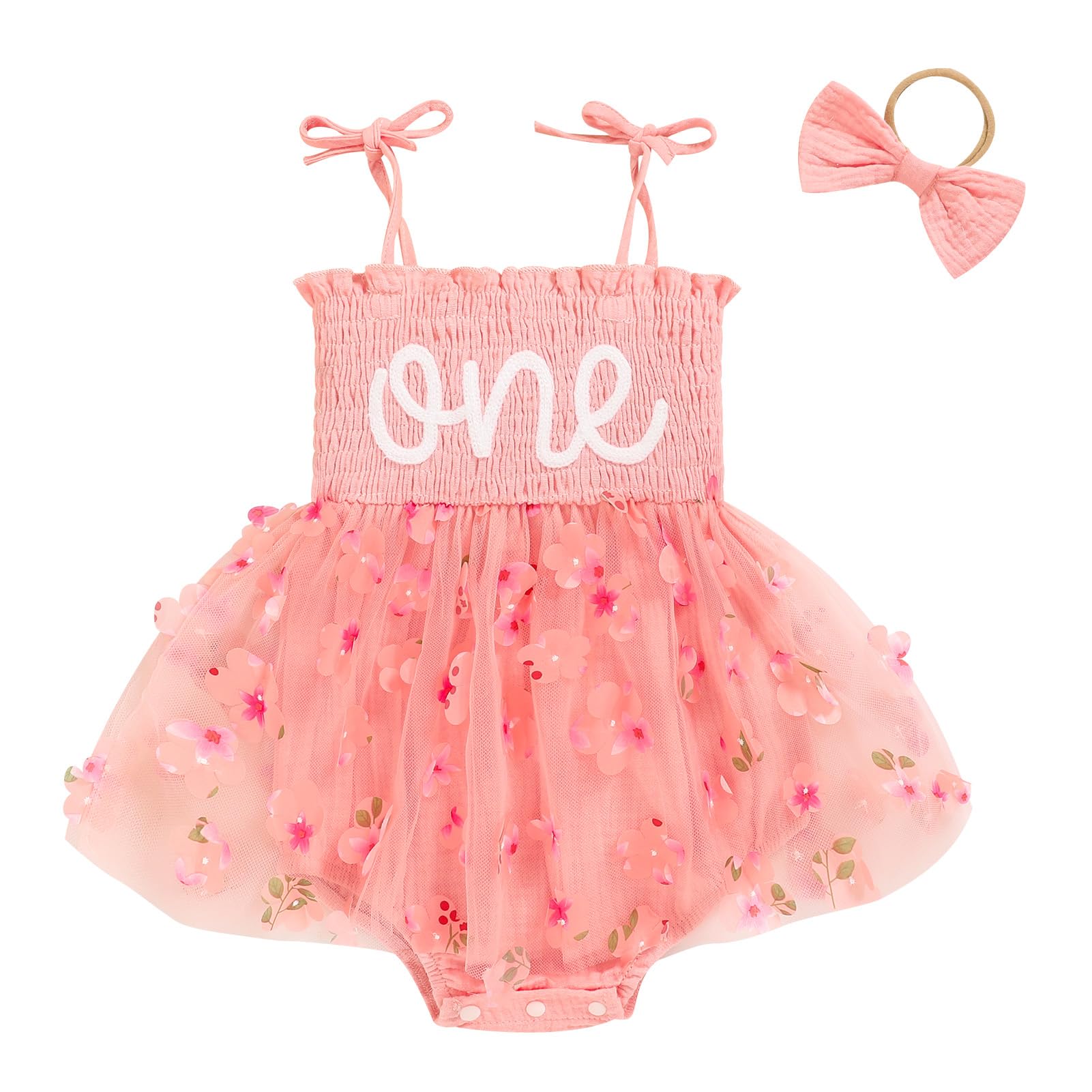 Design: Newborn baby girl playwear romper dress with sleeveless, solid color, multi-layered tulle, Snap leg openings for easy diaper changes, easier morning for novice mother.Cute princess 1st birthday outfit, fashionable and adorable embroidery ONE printed themed birthday clothes perfect for creating beautiful memory of her first birthday.