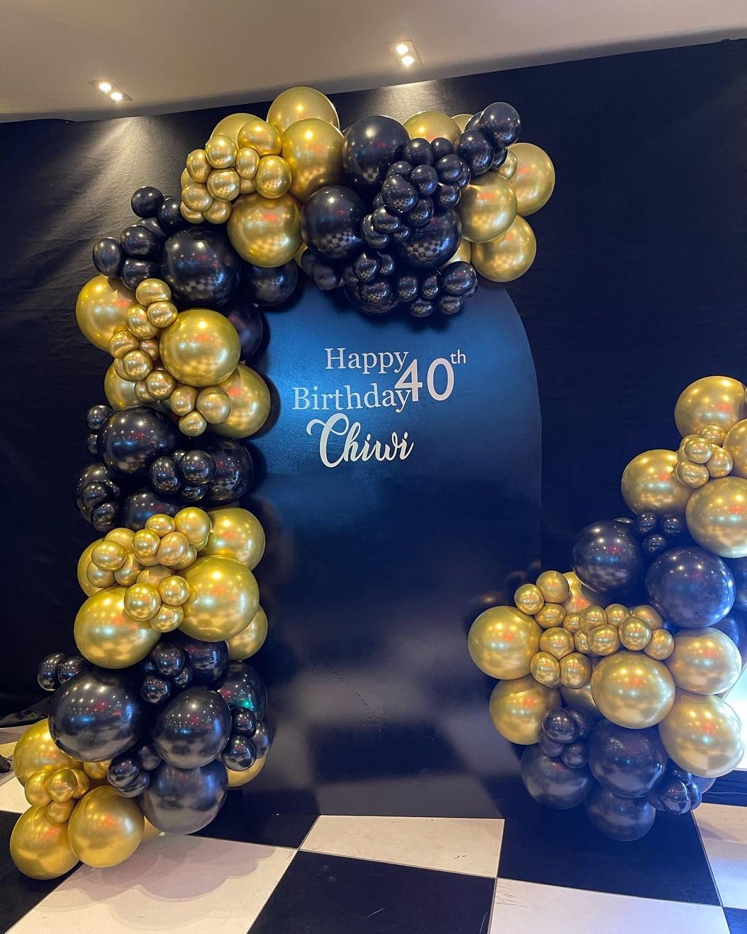 【Black and Gold Balloons Kit】: Our black and gold party balloons decorations, gold black balloon is the perfect decoration for happy occasions or celebratory moments such as black gold themed parties, graduation decorations, new years party decorations, birthday parties, suitable for both indoor and outdoor events.