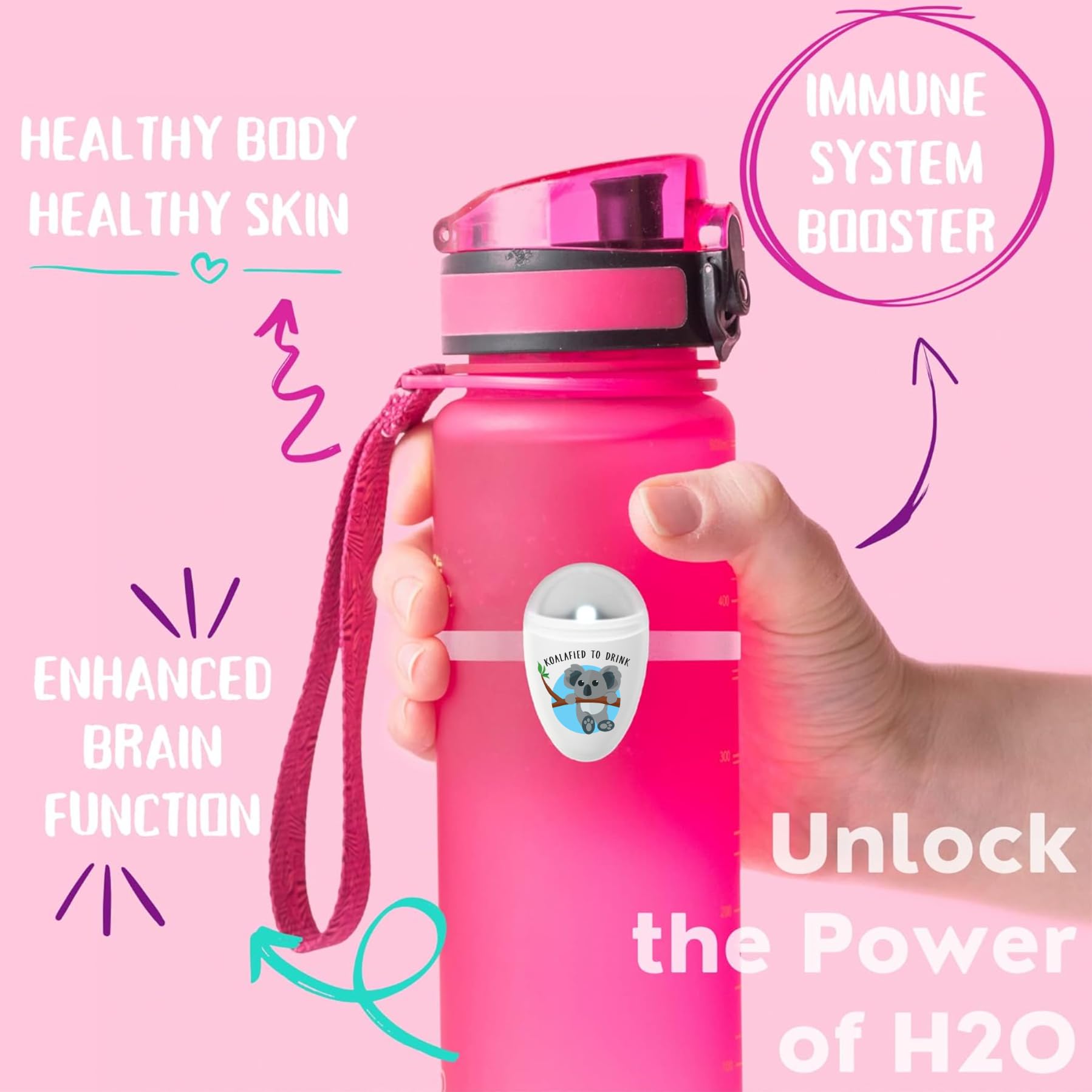💧 EASY TO USE: Ulla makes drinking water easy. No need to buy a new water bottle - just attach Ulla to turn your existing one into a smart water bottle and get the optimal hydration your body needs. With included silicon band you can mounted it on water bottles of all sizes and materials. It can also be attached to any standard glass or mug.