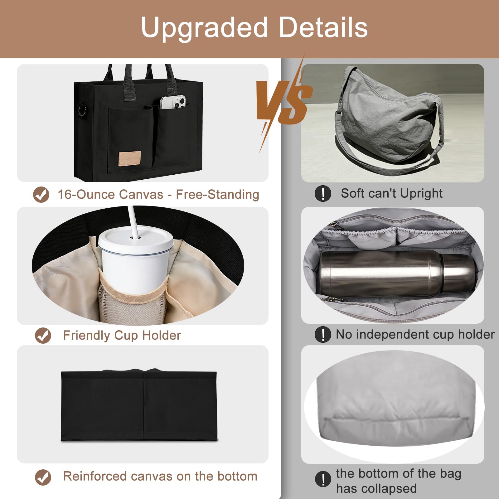 Secure Closure & Thick Reinforced Base: Comes with top zipper closure for anti-theft protection and private storage. The sturdy thickened bottom offers strong support, keeps the tote standing steadily, holds heavy items easily and maintains the original shape without collapsing.
