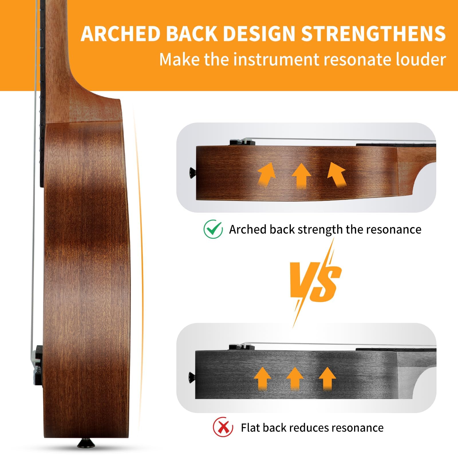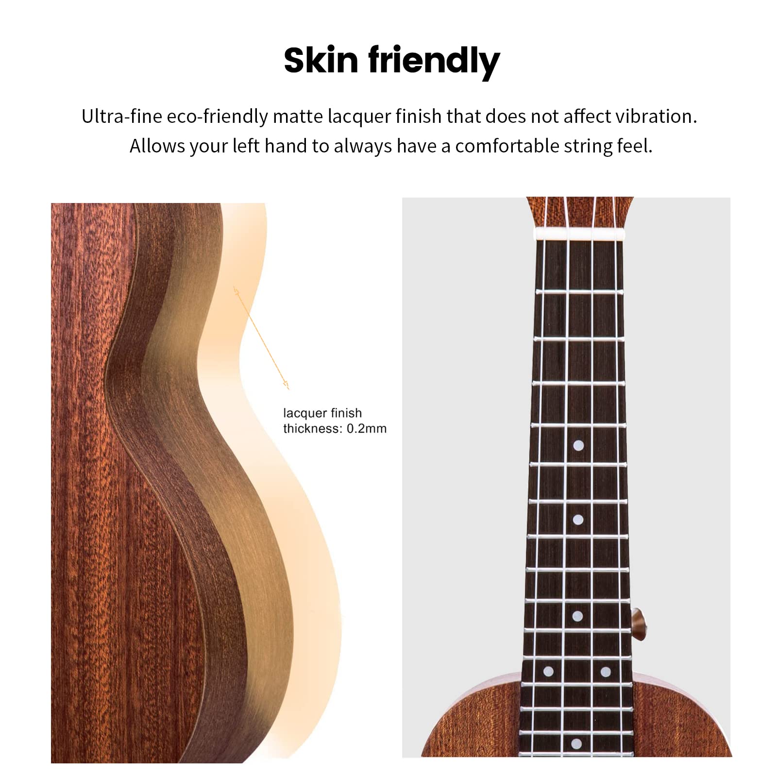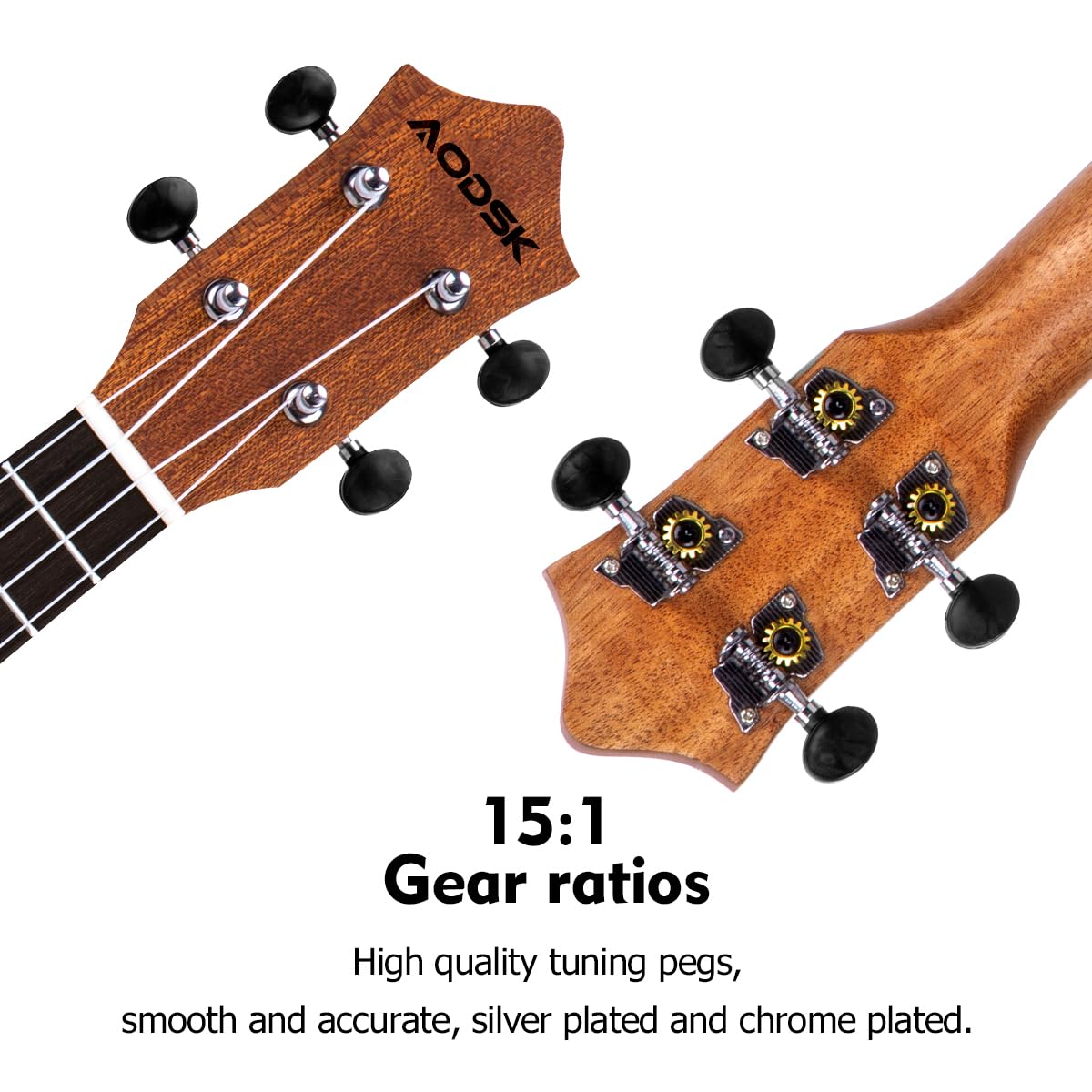 【Warm and Rich Sound】AODSK Ukulele Sapele top body and neck give you a richer, brighter, warmer sound; high-end resin nut and saddle with 4 highly polished smooth carbon nylon Strings combine for clear, beautiful resonance and more sustain