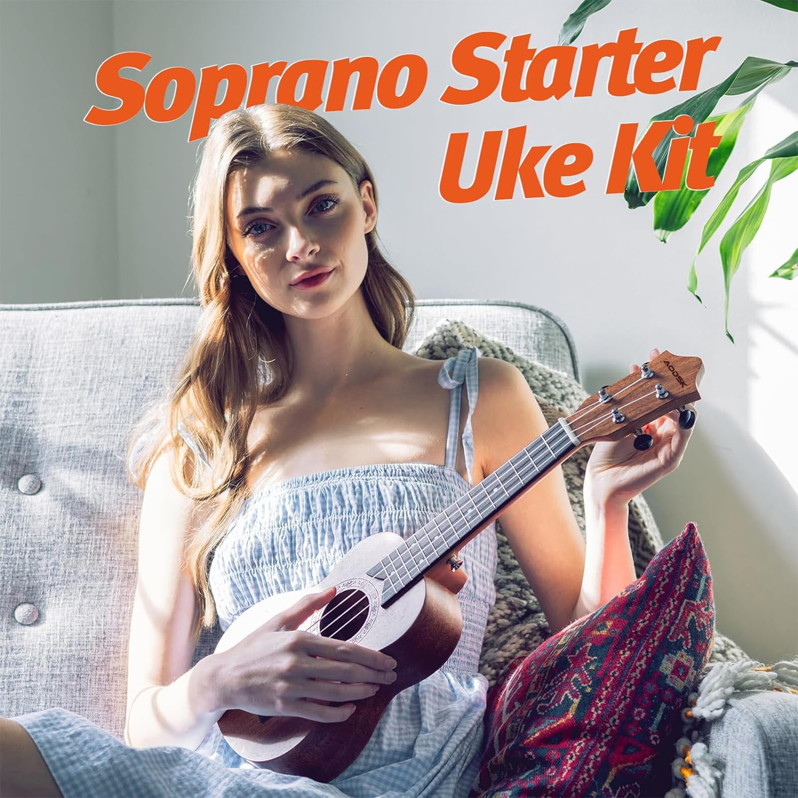 【Comes With All The Accessories You Need】Ukulele bundle includes soprano ukulele, gig bag, strap, tuner, 4 extra nylon strings, 4 picks, cleaning cloth, and accessory storage bag. Meet all the needs of players. This padded gig bag features shoulder straps and an exterior pocket for comfortable carrying and good protection for your ukulele. Makes a decent gift for birthdays, Christmas, Thanksgiving, New Year and more