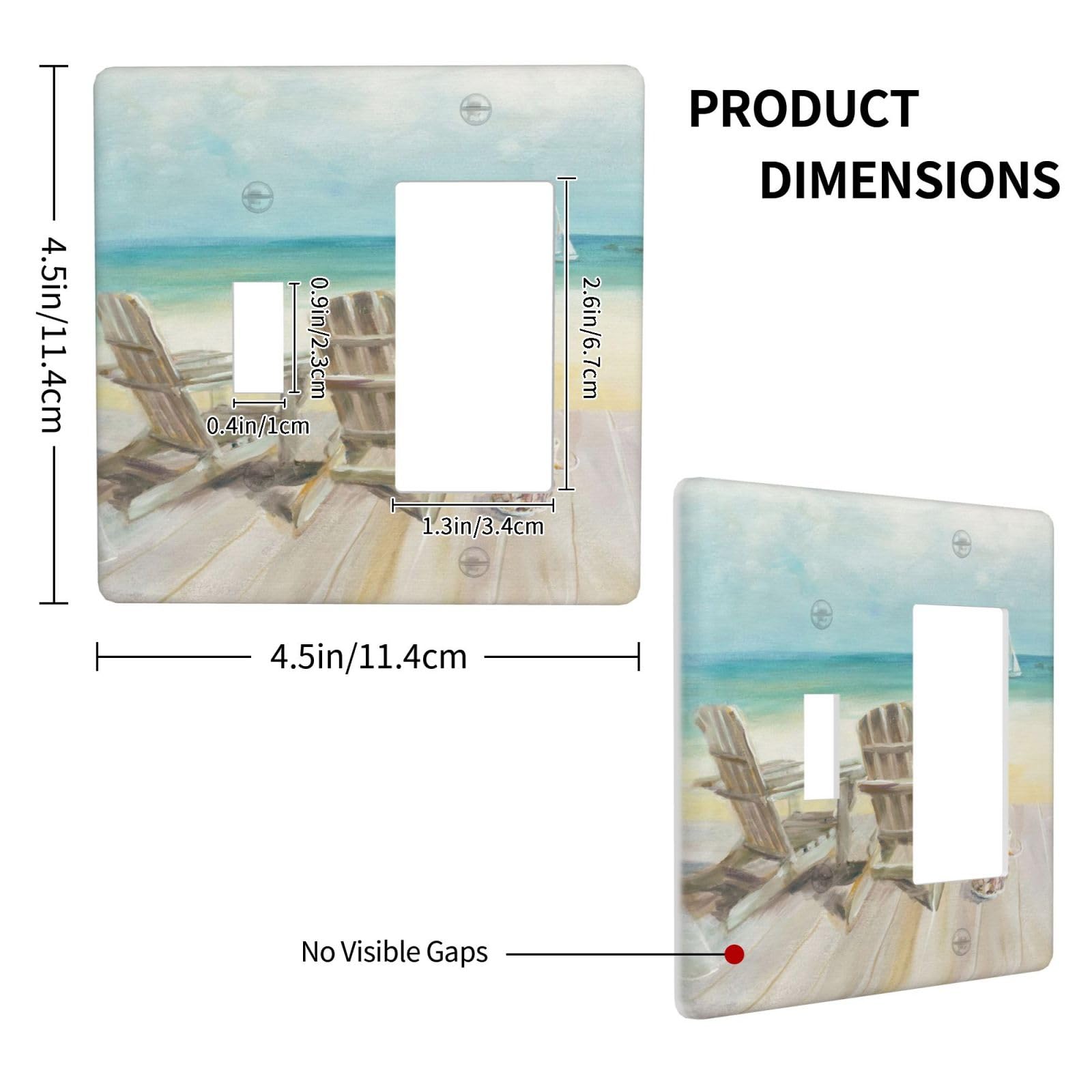 【Mid Size Switchplate】1 Gang 5 X 3 In. 1 Gang Rocker 4.4 X 2.76 In. 2 Gang Toggle 5 X 4.9 In. 2 Gang Rocker 4.5 X 4.6 In. 2 Gang Comb 4.5 X 4.5 In. 3 Gang Toggle 6.7 X 4.8 In. 3 Gang Rocker 6.38 X 4.49 In. 4 Gang Toggle 8 X 4.5 In. 4 Gang Rocker 8 X 4.5 In.