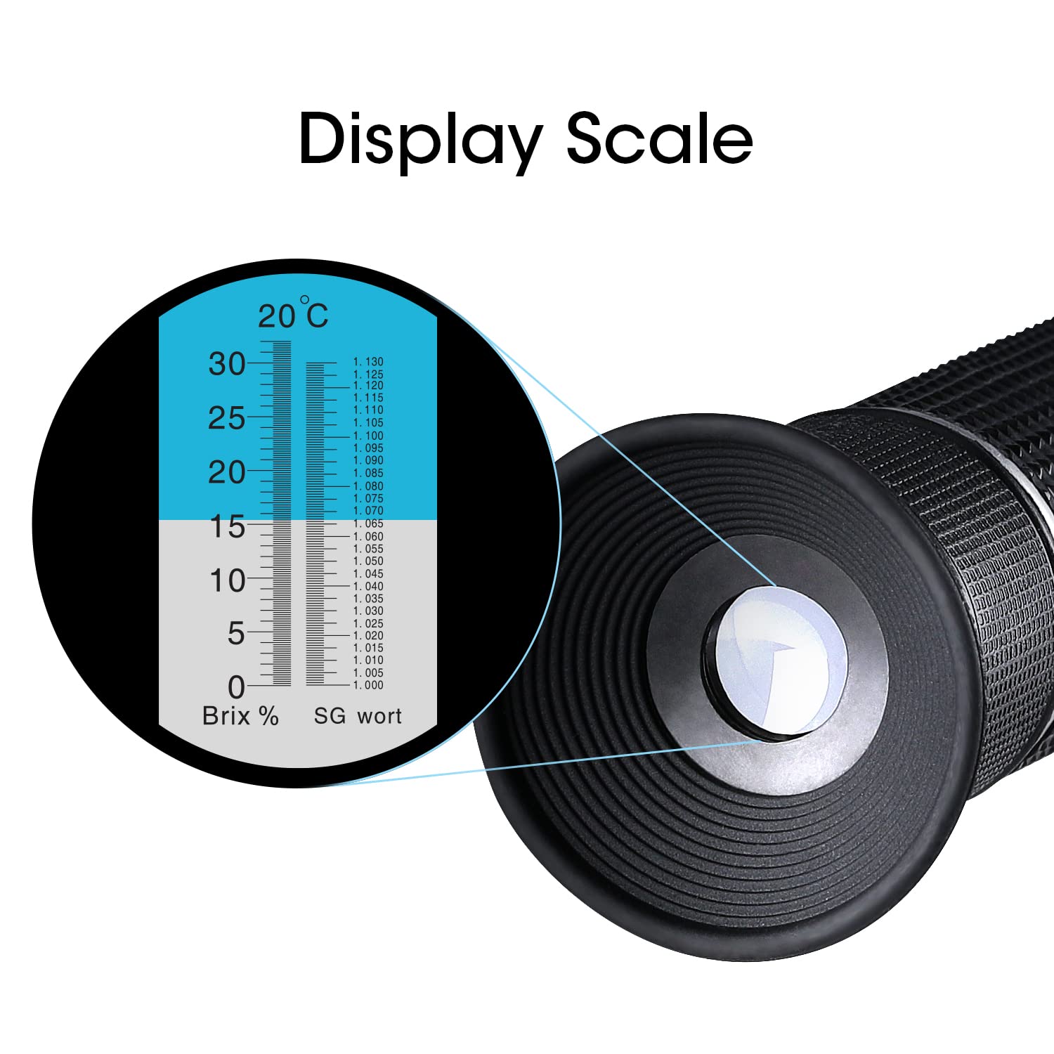 đșăEasy to Useăâ Place 2 - 3 drops of liquid sample onto the prism of this hydrometer, then look through the eyepiece to get the reading directly. NO test jars needed, NO measuring or calculating work needed, operating easily brix refractometer, convenient to use and save your time.