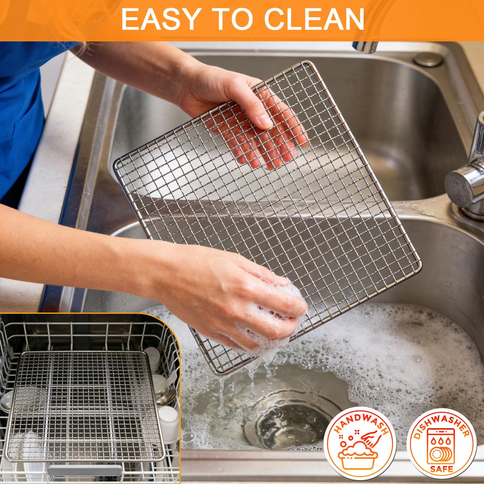 Dishwasher Safe: The tray is dishwasher safe for easy cleanup. It is firm, resistant to warping, and has a non-stick, durable surface. Even stuck-on food typically releases after a brief soak. Please avoid cleaning with abrasive cloths or metal scrubbers