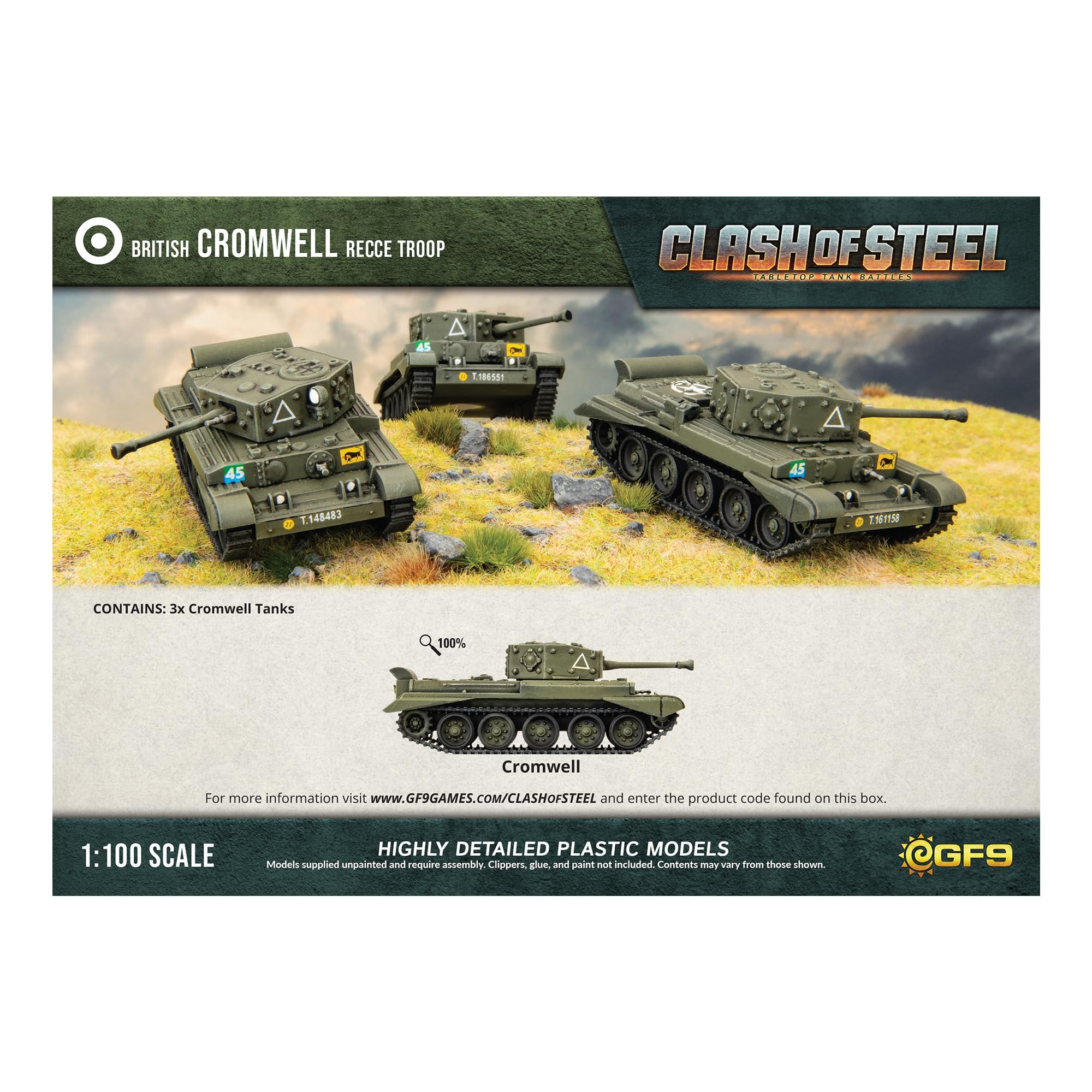 Contains 3 British Cromwell Recce Troops.