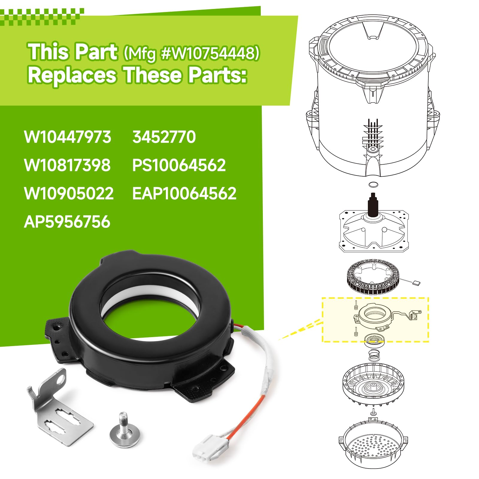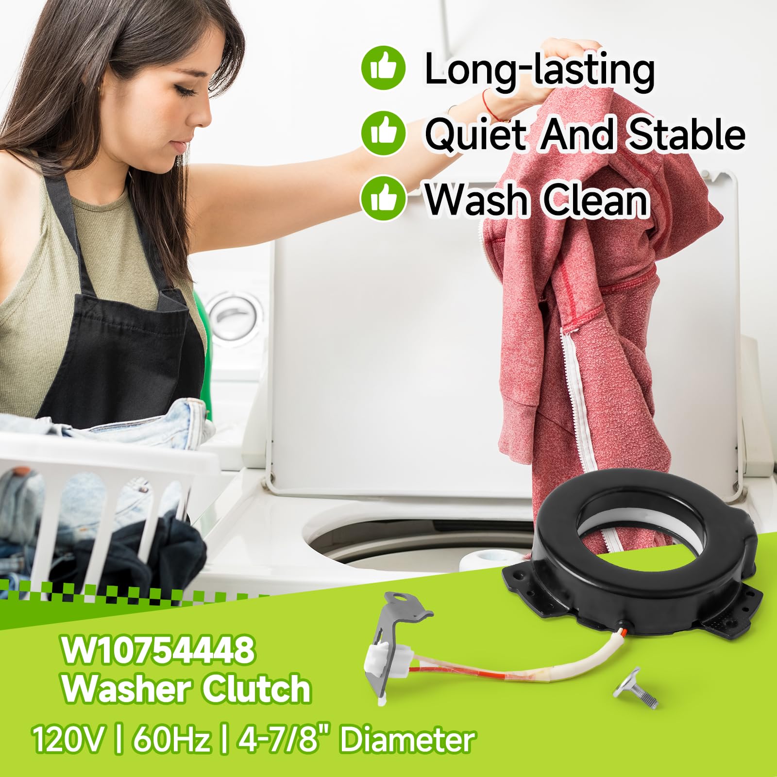 【Compatible Brands】W10754448 Washer Clutch is compatible with Whirlpool, Maytag, Kenmore, Crosley washers. Not sure if it's compatible with your washing machine model? Welcome to email us your washer model