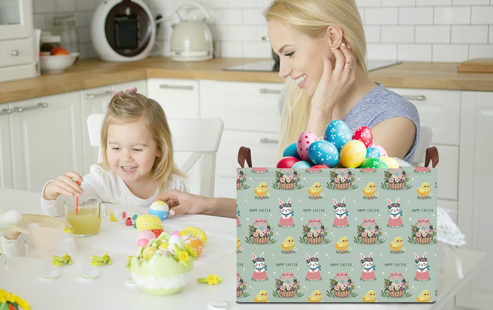 FOLDABLE BASKET SIZE: 14.9”LΓ—10.2”WΓ—9.8”H inches. Save on space when not in use and fold flat for easy storage, Perfect for baby shower gifts, toys, books, clothes, games, baby doll accessories, or match-box cars.