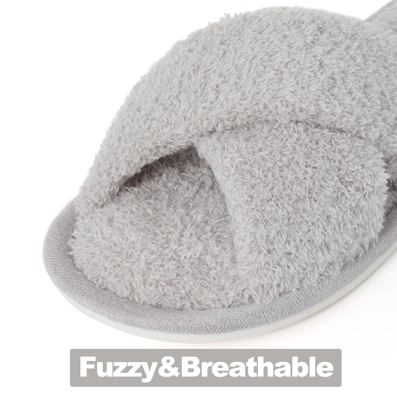 FASHION & ELEGANT: Breathable open-toe along with trendy faux fur design makes these womens slippers stylish and practical. Easily slides in whenever you want your feet relaxed.