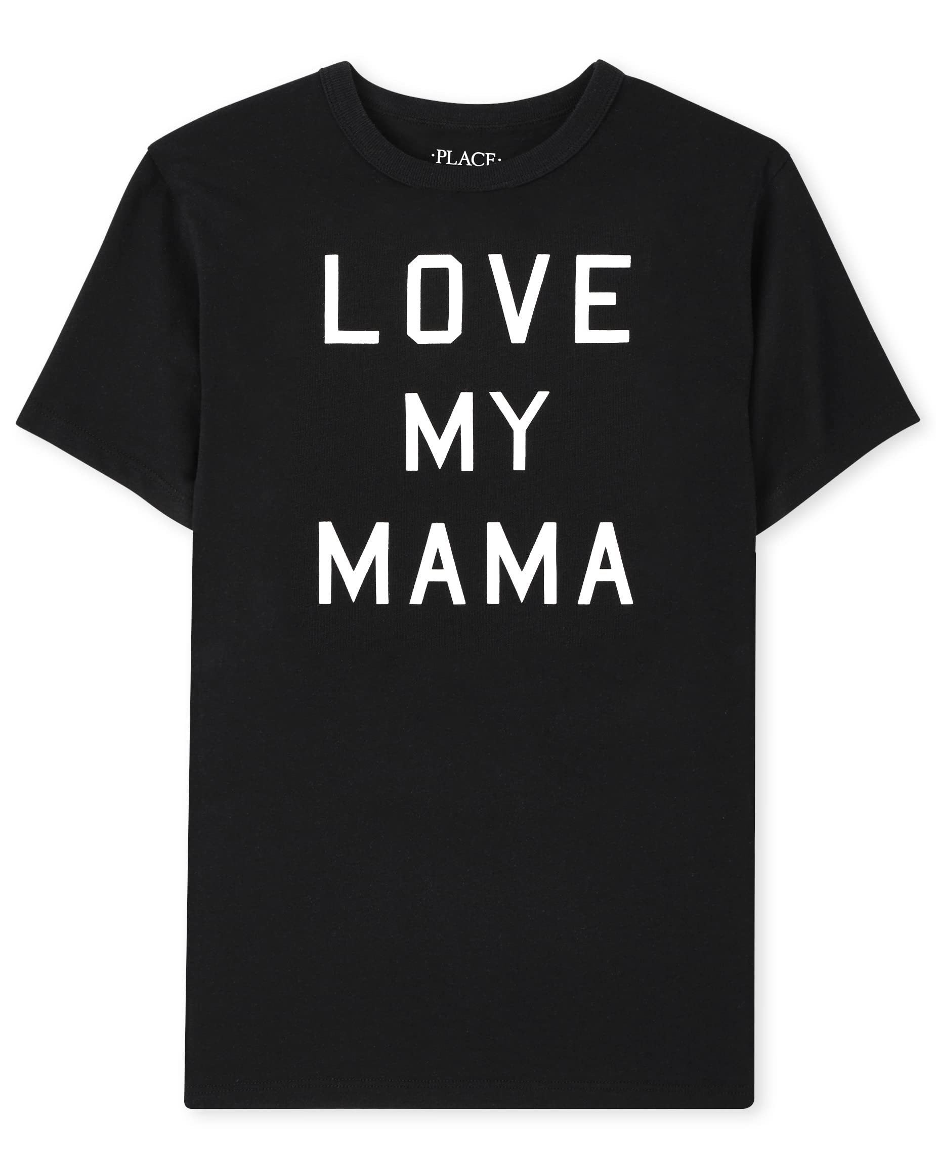 DESIGN — Features short sleeves, rib-knit crew neck and 'Love My Mama' graphic design at front