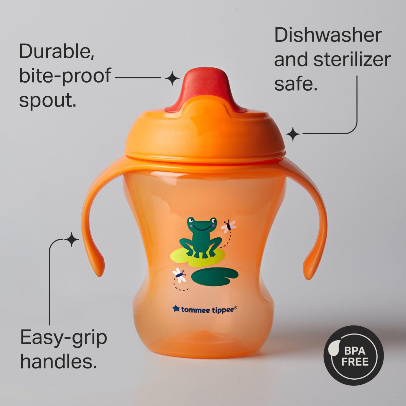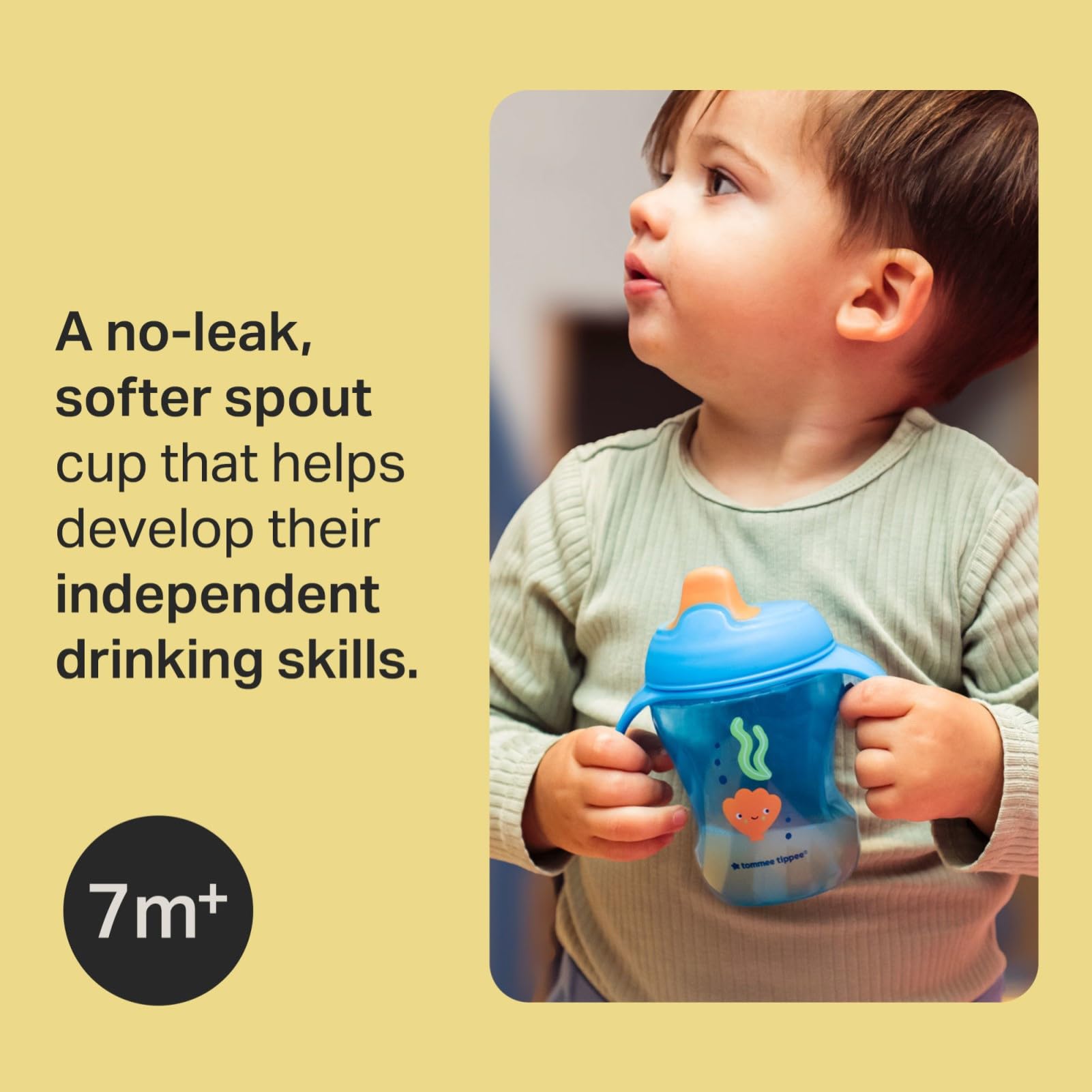 Product Description Tommee Tippee's cup collection includes training cups for weaning babies as young as six months, as well as big-kid sports bottles perfect for keeping active toddlers hydrated. Specially designed to be spill and drop-proof, these durable cups and bottles stop leaks and bring a sense of fun to every sip. They’re decorated with cute characters and trend-led colors, so if you're looking for a new cup for your baby, we've got one to suit your style. From the Manufacturer Our no-leak, softer spout cup that helps babies 7 months+ to develop their independent drinking skills. With a travel-friendly lid that helps keep the spout clean between sips. • Clever two-piece valve stops messy spills (even when upside down or shaken) • Durable spout is gentle on little mouths (but bite-resistant) • Suitable for babies aged 7 months+ • The easy-grip handles are designed for little hands to carry, so they can sip on-the-go • Dishwasher and sterilizer safe, and BPA free